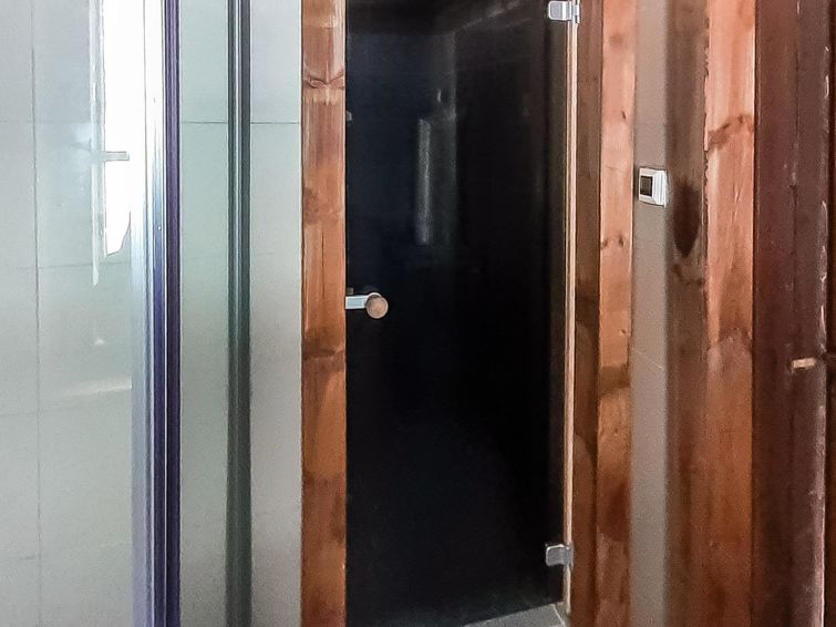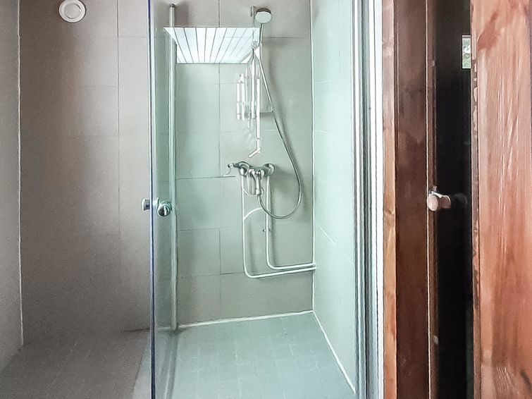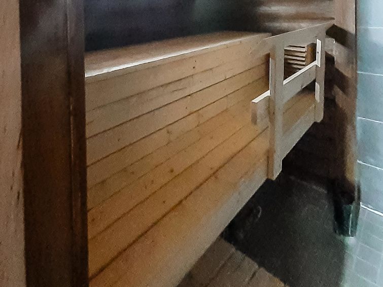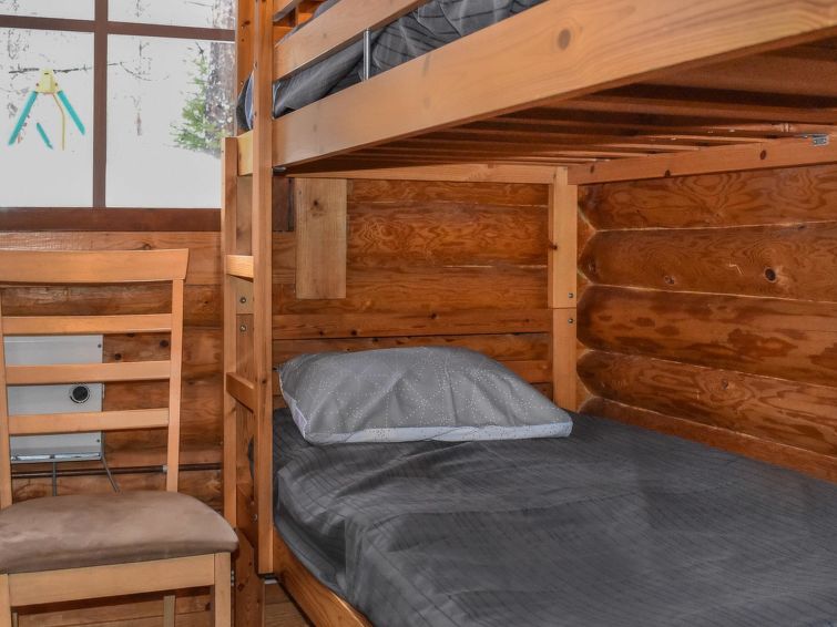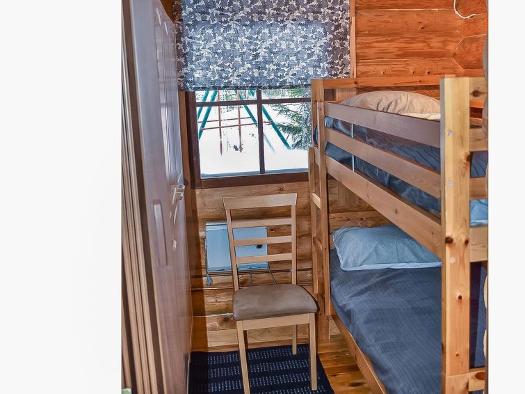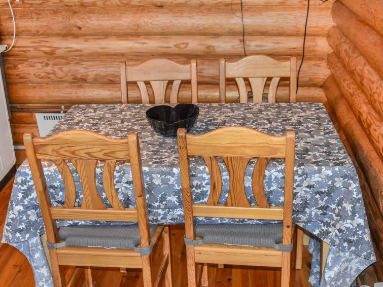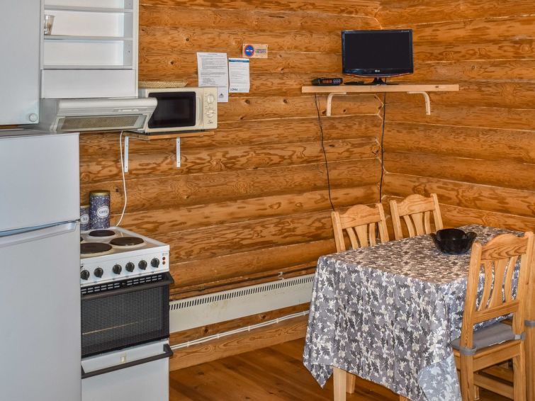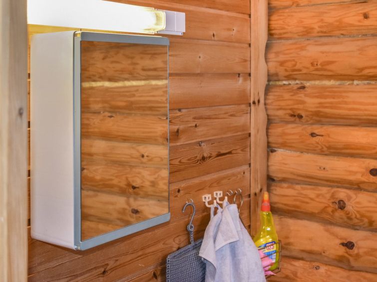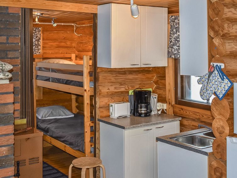 In cottage living room/kitchen with 1 extra bed, bedroom with double bed (120 x 200 cm), alcove bunk bed, sauna, dressing room, open veranda. Access to shower/sauna from terrace. Cottage has also a wood stove. Extra fee for pets 20 eur/pet.