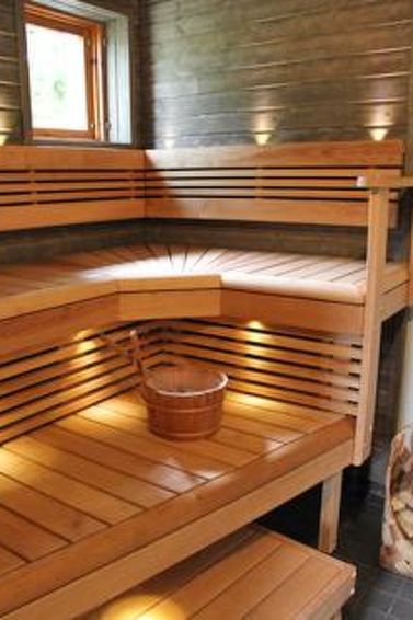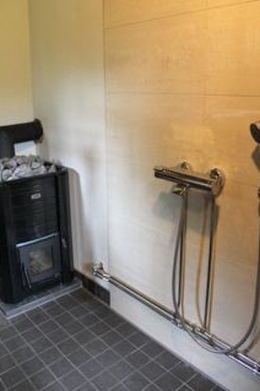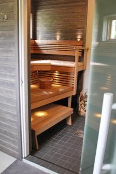 Wooden cabin 1989, renovated 2018, living room/kitchen with convertible sofa, bedroom with 2 beds, sauna, dressing room, open veranda.