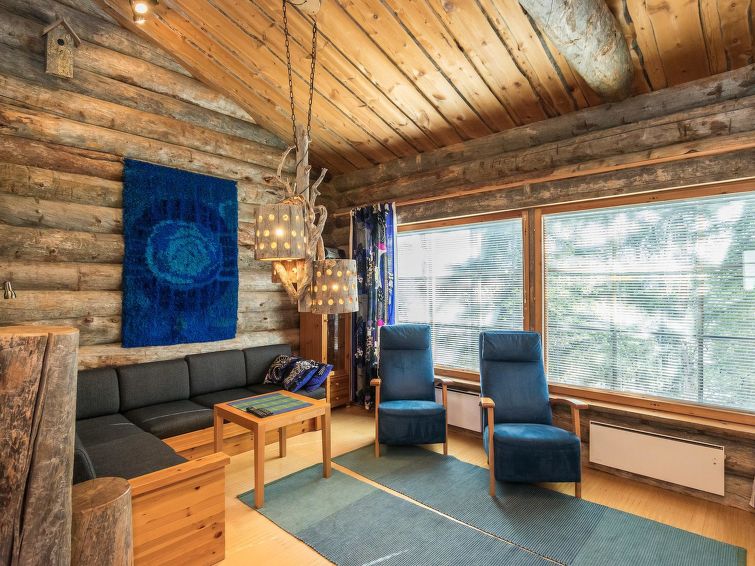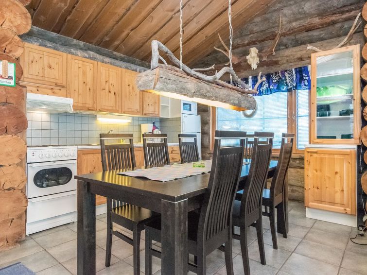 25km north of Kuusamo, Vuosseli (Eastern Ruka) 800m. Apartment in log-built semi-detached house, built in 1998, bedroom: 2 beds, low loft (15 m²): 4 mattresses, living room: corner sofa for two, kitchen, electric sauna.