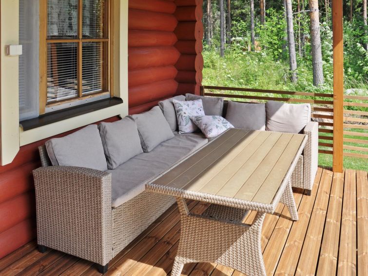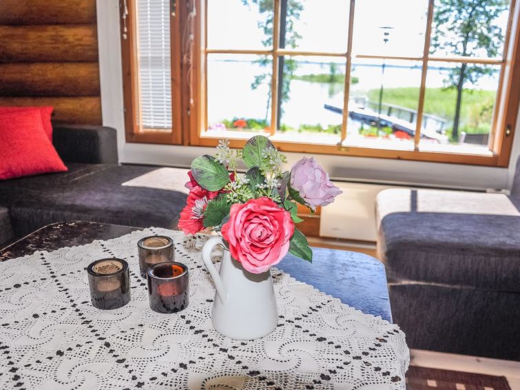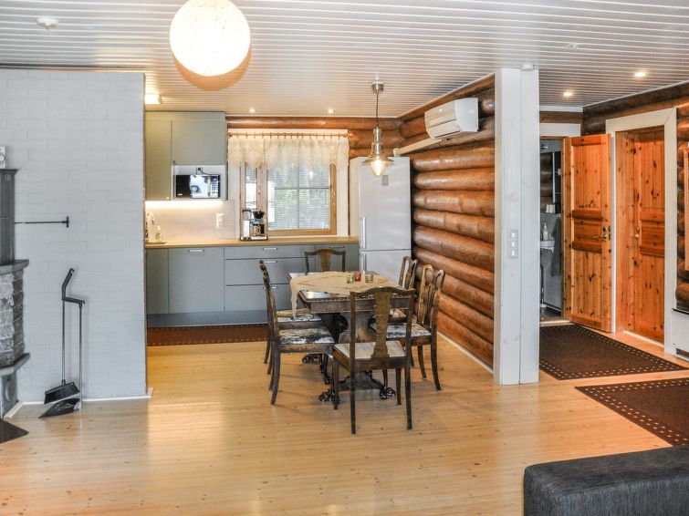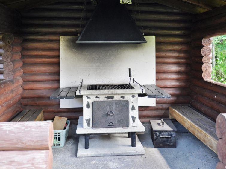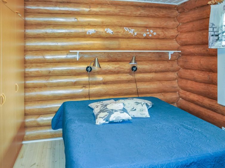 40 km southwest of Joensuu, Lake Orivesi 30 m (536 km2), own shallow beach with sand bottom, own boat and jetty. Log cottage 1995, kitchen-living room with 2 convertible sofas, bedroom with double bed, bedroom with two beds, dressing room, washroom, sauna (wood heated stove, entrance both from the inside of the cottage and from the teracce), terrace. Log cottage situated by the Lake Orivesi in Liperi. The shallow beach faces the South. Good possibilities for grilling, there is a separate roofed grill hut. There is also a baking oven and stove in the cottage. For children, there is pot and bed. Good possibilities for fishing, licenses can be obtained from the owner. Hunting is also allowed on the lands of the owner. The owner sells hunting licenses for hares, ducks and doves. The owner can prepare skiing tracks from the cottage. 30 km to the Pärnävaara winter sport centre, where illuminated track. Nearest illuminated ski track 14 km. Final cleaning cost will be added to the price. Reservations start at 16.00 and end at 12.00 (also in weekend bookings).