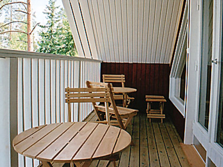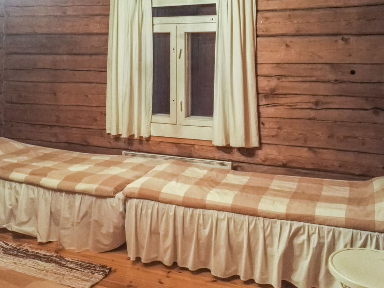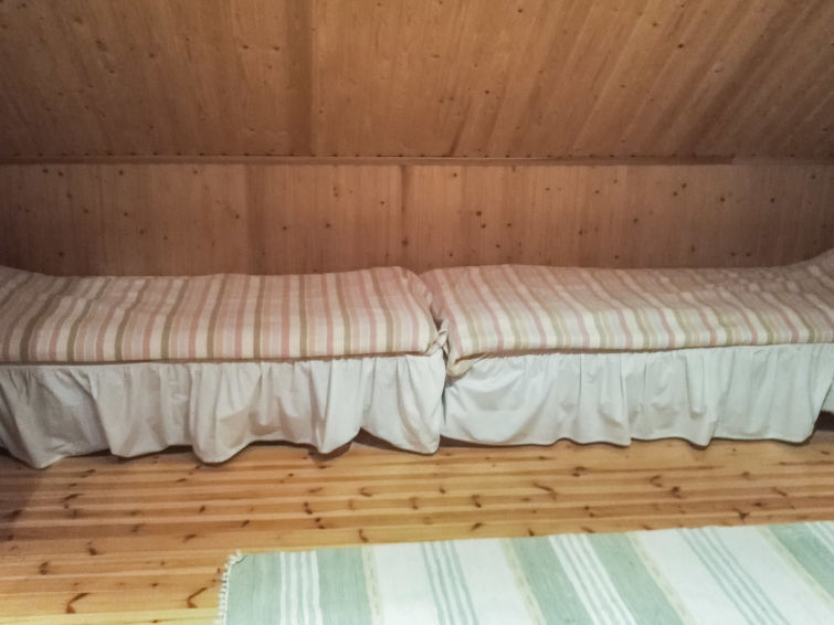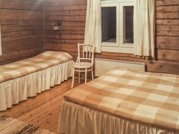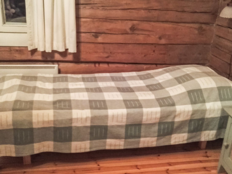 Two-storey cottage rebuilt from solid old logs 2003, sauna and household appliances renewed and surfaces renovated in autumn 2022. Living room/ kitchen, bedroom double bed + single bed, bedroom double bed + 2 single beds. Upstairs: living room convertible sofa, bedroom double bed + 2 single beds, balcony, terrace. Dressing room, washroom, sauna, open porch. Play Station 3. Wi-Fi.