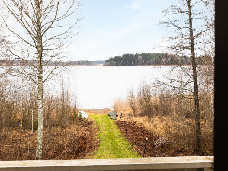 Maximum one pet allowed. Chalet on plot on slope, with level grassed yard on both the land side and the shore side. The next-door neighbor is rental villa 5138 (distance 40 m), other neighbours are more far away. Shore path is fringed with many fine large ostrich ferns. In the farm area there is also a WWF-type landscaped meadow and a forest lean-to approx. 80 m from the cottage.