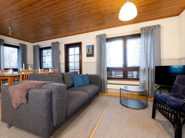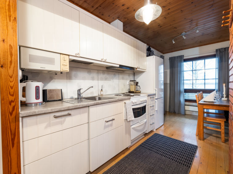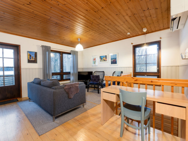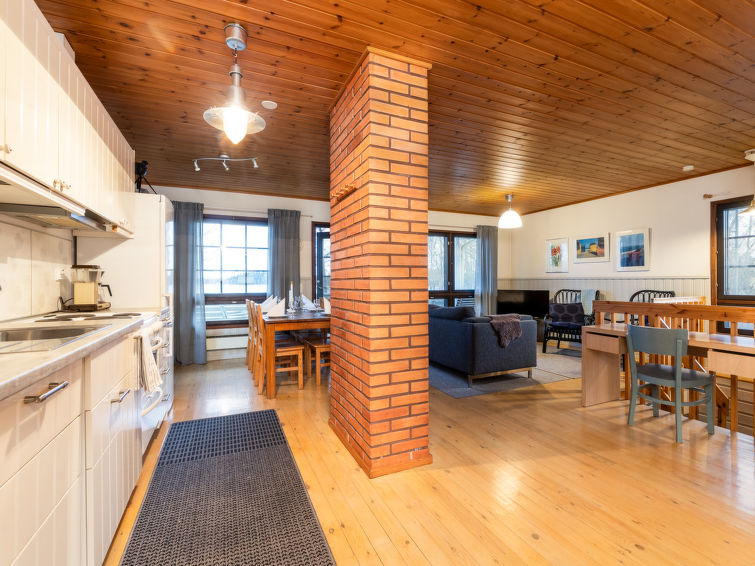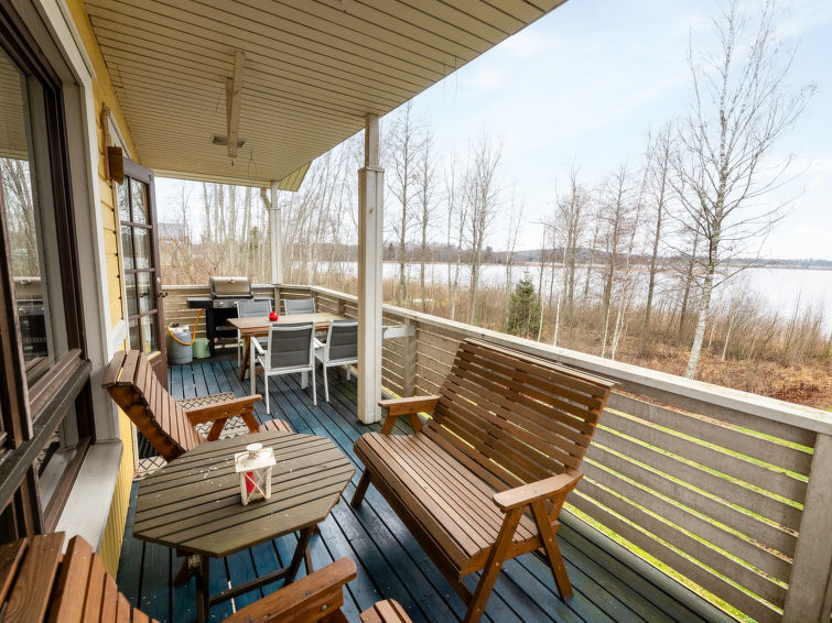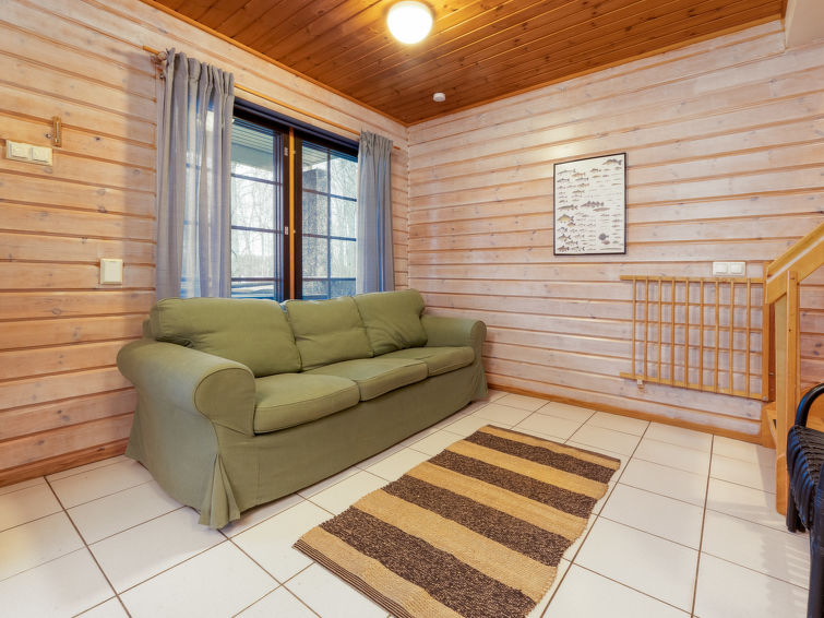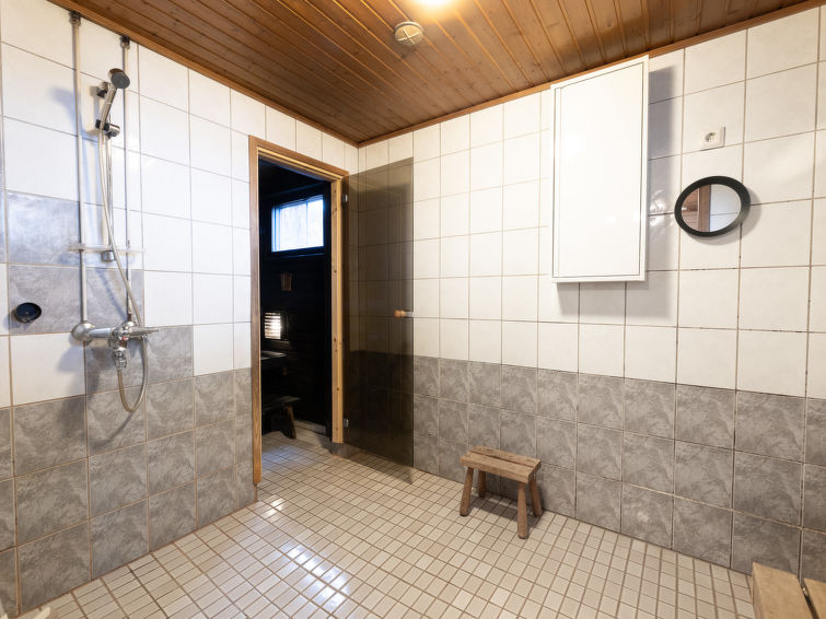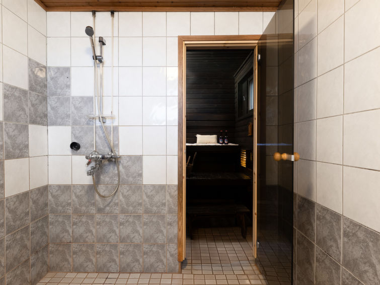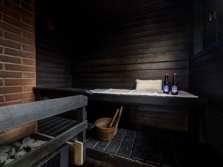Downstairs: bedroom 3 beds, room with fireplace with 1 extra bed, sauna (wood-burning stove), washroom (shower). Cottage has balcony and open terrace towards evening sun.