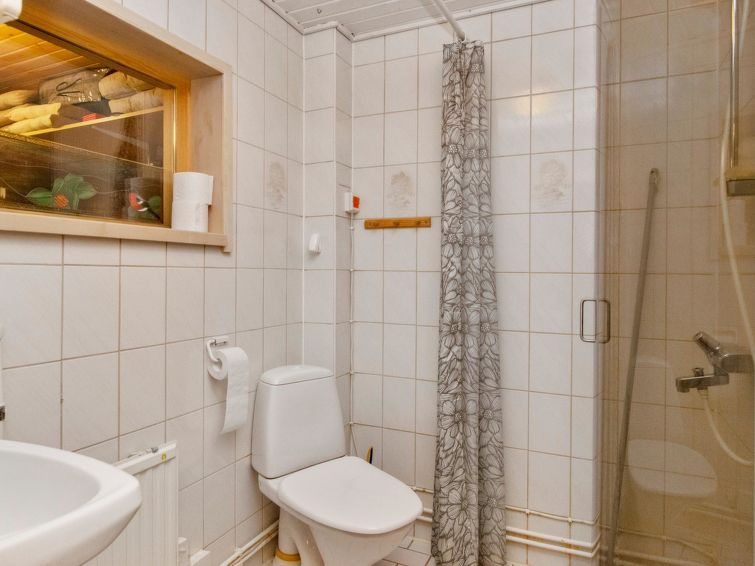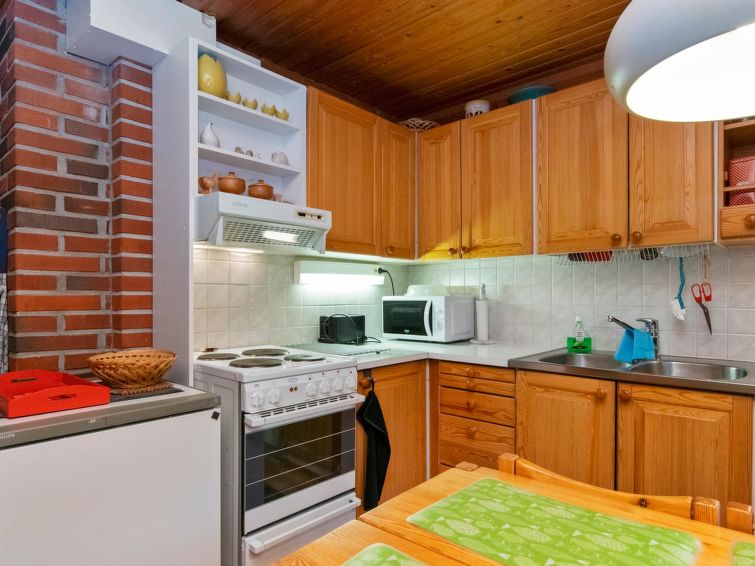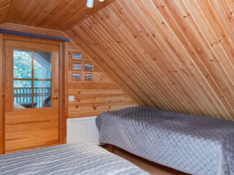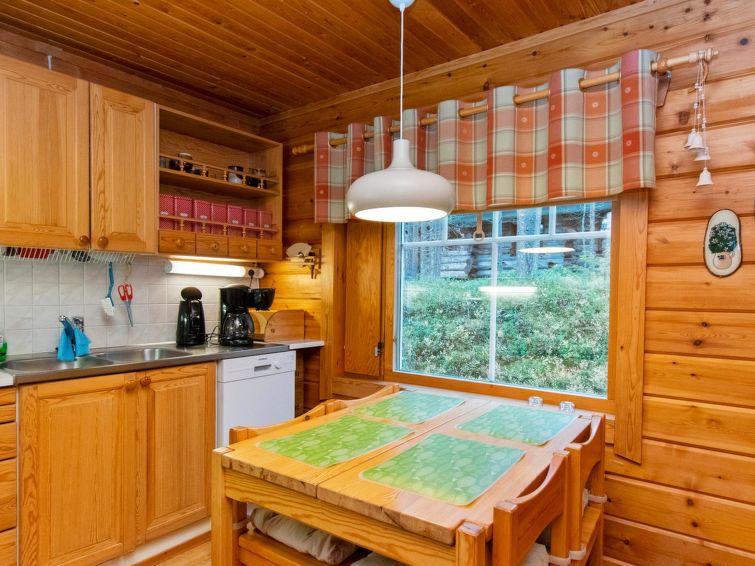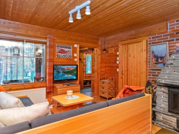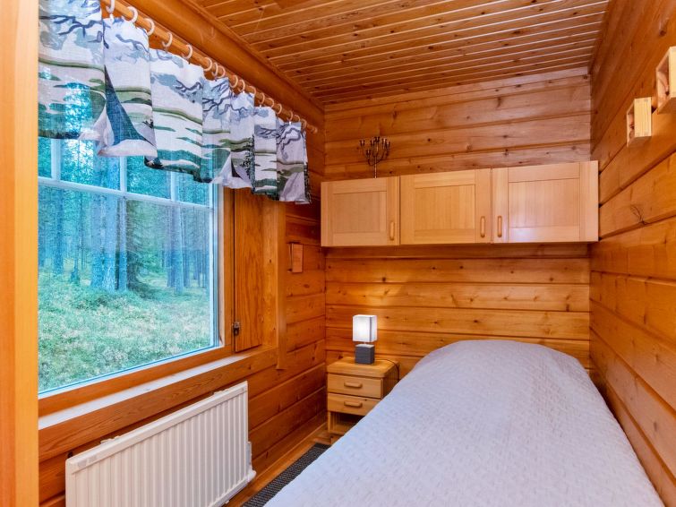 52 km north from Kemijärvi, log cabin built in 1983 and renovated 2001. Downstairs: kitchen, living room, alcove with one bed (80*200cm), sauna (electric stove), washroom/ toilet and utility room/ wardrobe. Upstairs: double bed (160*200cm), bed (110*200cm), bed (90*200cm).