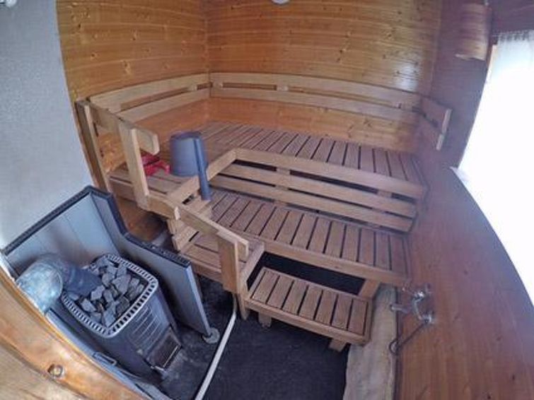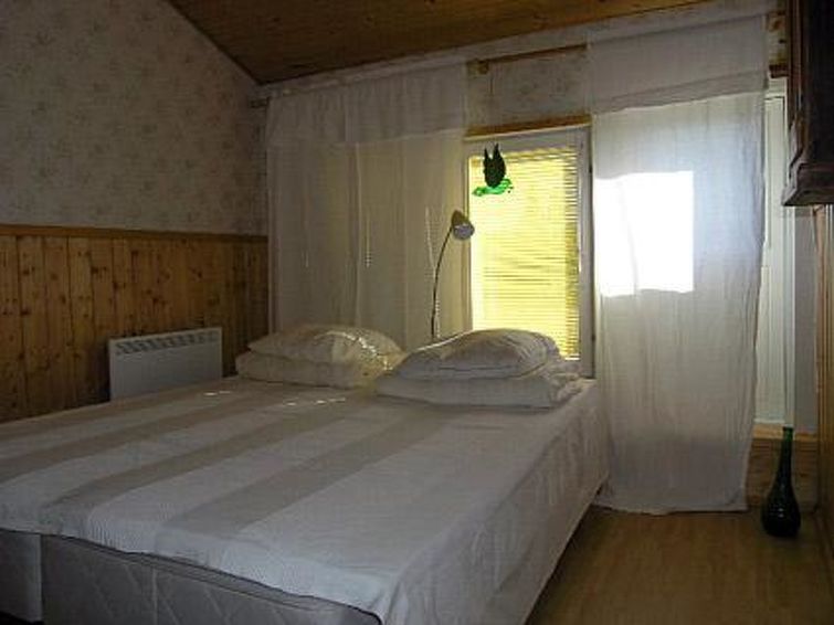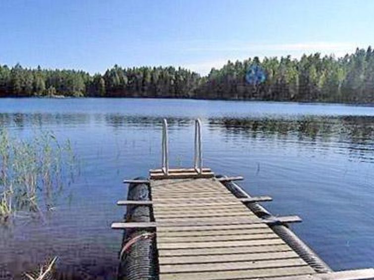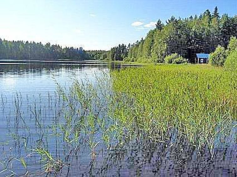 Log house 1960s which was renovated/converted in 2008 as holiday home, living room/kitchen convertible sofa/ bed, bedroom 2 beds, sauna with wood-fired stove, washroom with shower, open porch. Himos ski resort 50 km. Red log cottage on level, light plot. Yard has many currant bushes. Owner rents out outboard motor (2.3 hp) and ATV (quad bike).