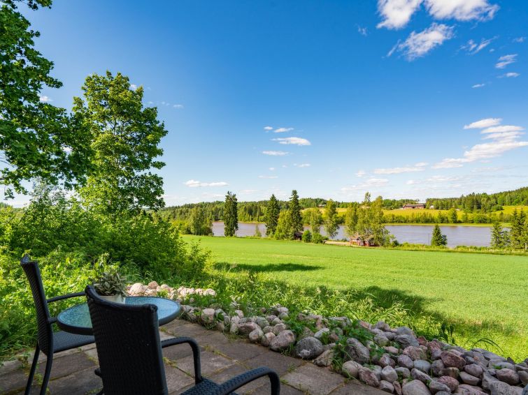 The surroundings are fertile croplands, groves, farmhouses and manors, kilometres of verdant Hirsjärvi shoreline. In places the lake is a kilometre wide, in others it tapers into a river.