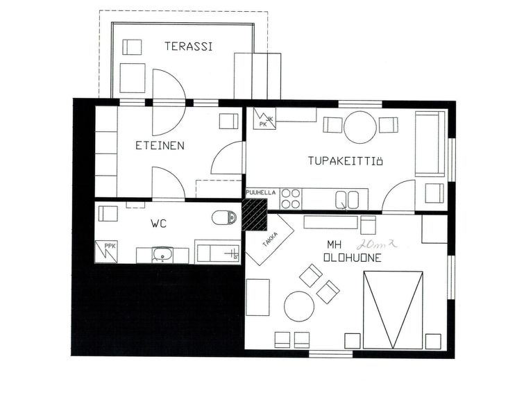 Own separate sauna (woodheated) with shower. Dressing room with fireplace.