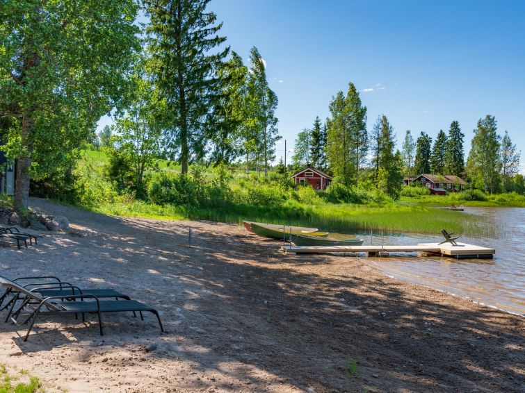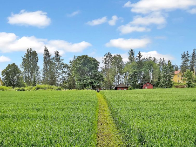 95 km north-west of Helsinki. Lake Hirsjärvi 300 m (length 15 km, breadth 100 m). 300 meters to the lake shore, which is in common use, boats. Beach is suitable also for children (shallow sand/clay bottom).