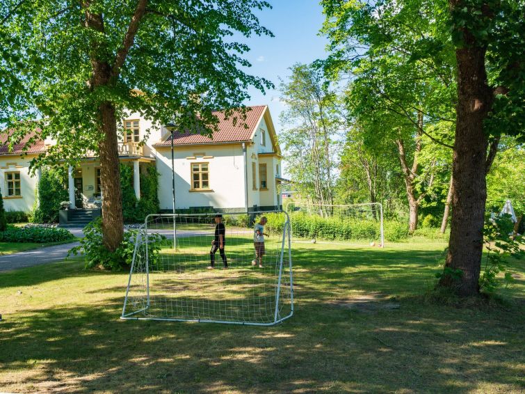 Beautiful view of the manor yard area, flat yard area. Neighbour in the same building, own entraces, no direct view of the neighbour. From sauna building view of the lake.