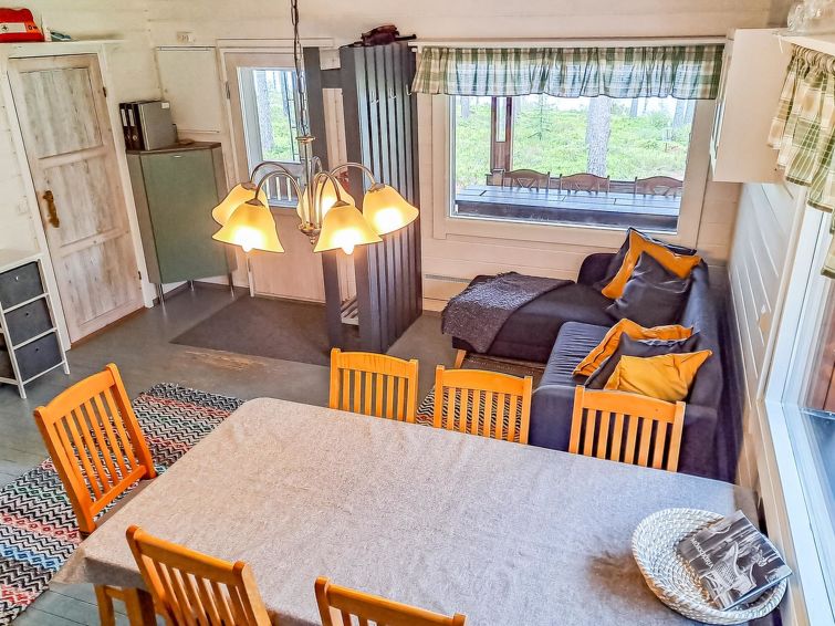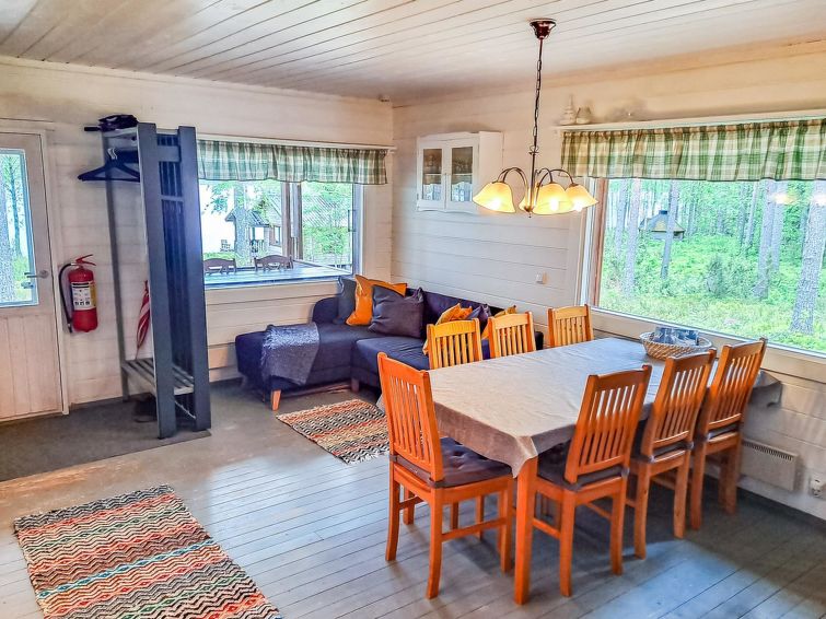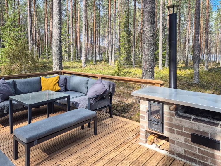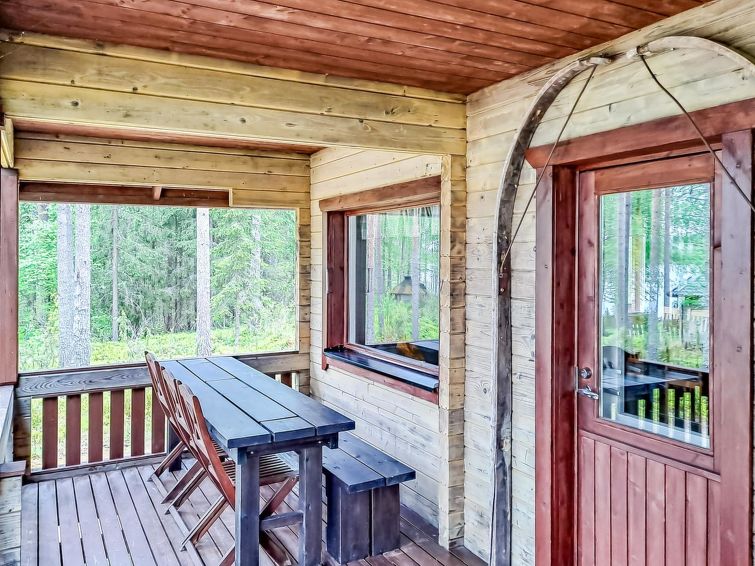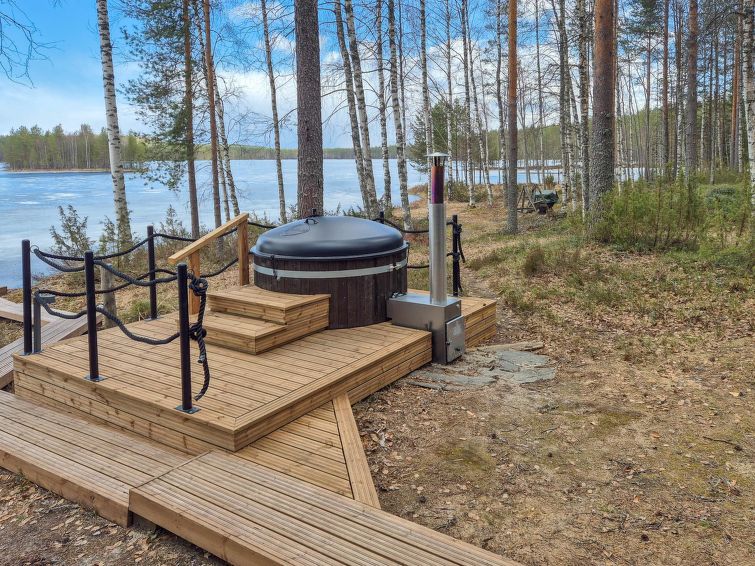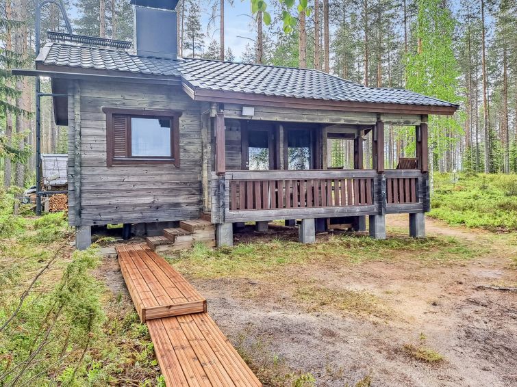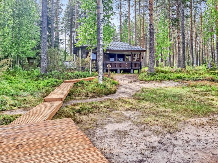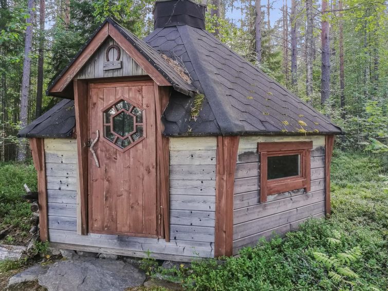 Separate electrified (fridge, elect. heating) outbuilding 28 m², lakeshore sauna (wood-fired) with washroom, room with fireplace. Water has to be carried to lakeshore sauna from lake. Comfortable cottage on large plot. Mechanical ventilation. Heathland in natural state, coniferous trees, lingonberries, bilberries stream (50 m), Pilkkalampi pool (500 m). Plot and nearby terrain protected. Ideal place for people seeking the peace of the wilds, neighbours far away.