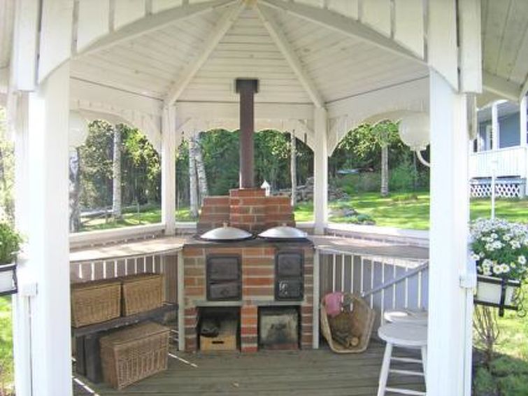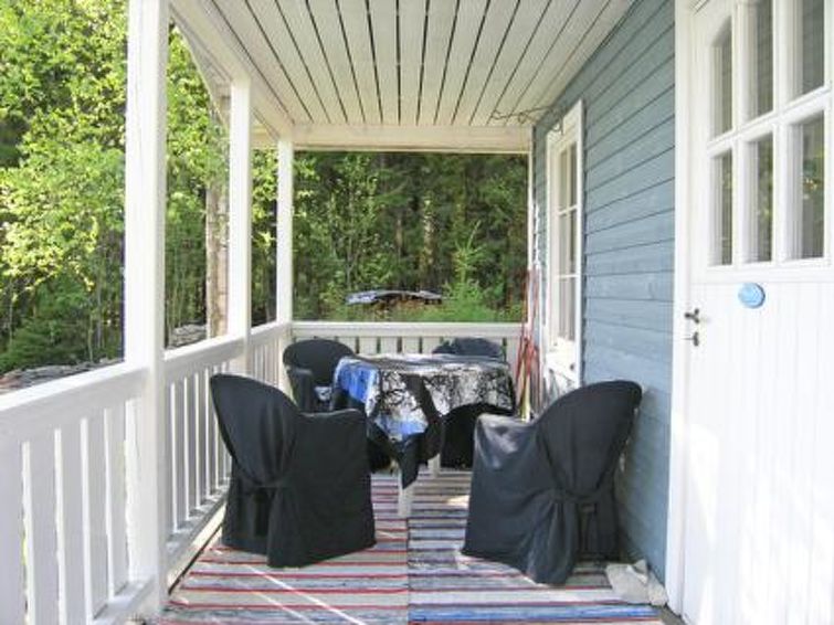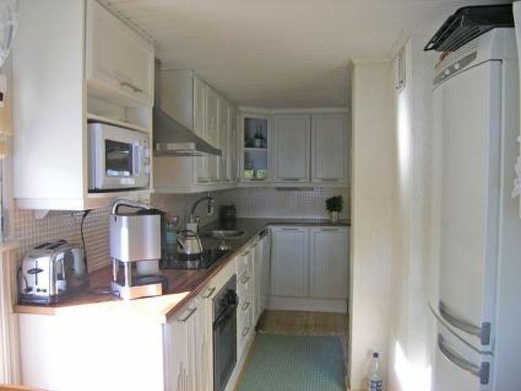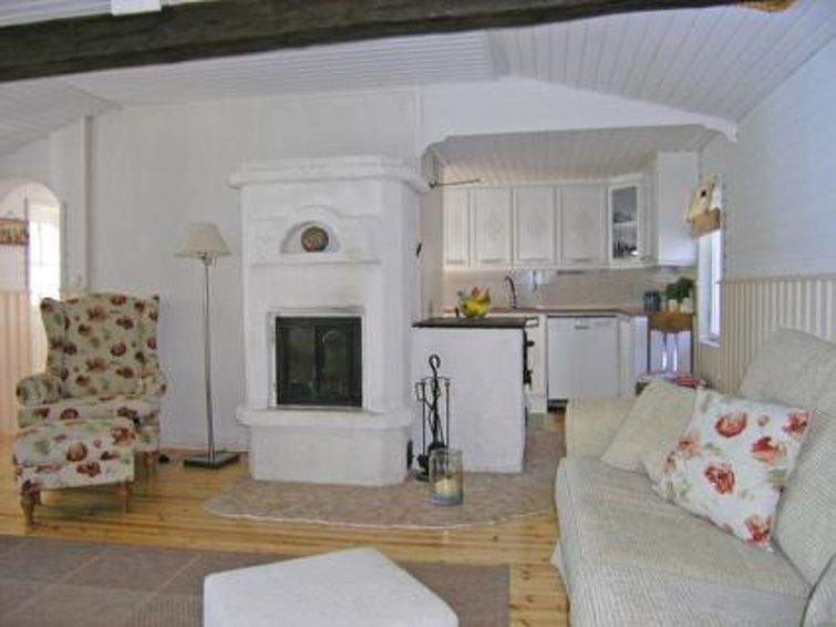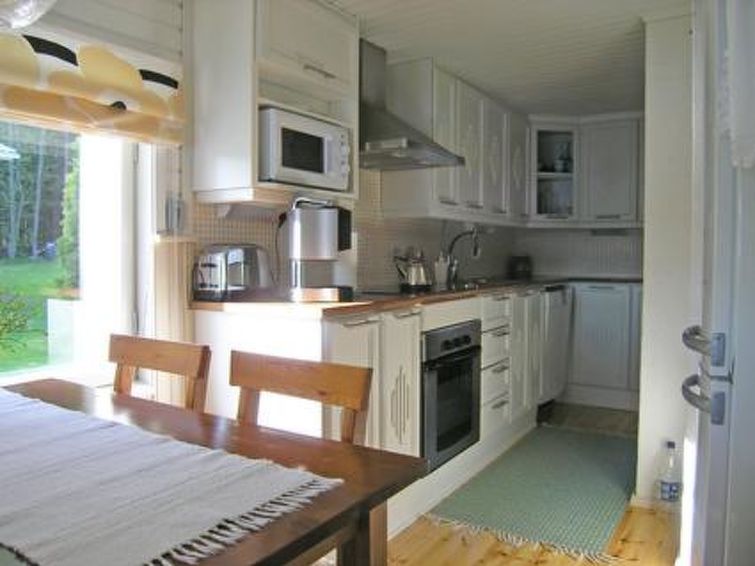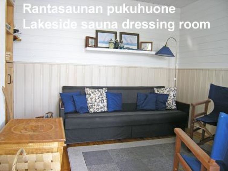 For rent high chair and baby cot 50 €/week. Very quiet, beautiful place with good beach. Suitable for a family with children. Flat lawn, a fountain, a swing and a sandbox. Cottage road runs steeply down to the cottage, the yard with few stairs, parking lot with a few stairs down to the cottage terrace.