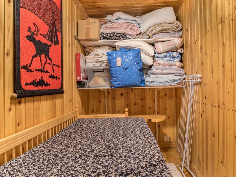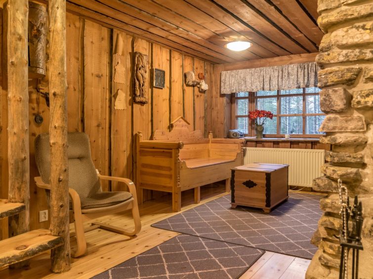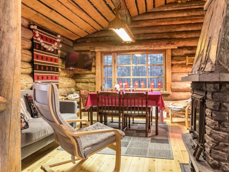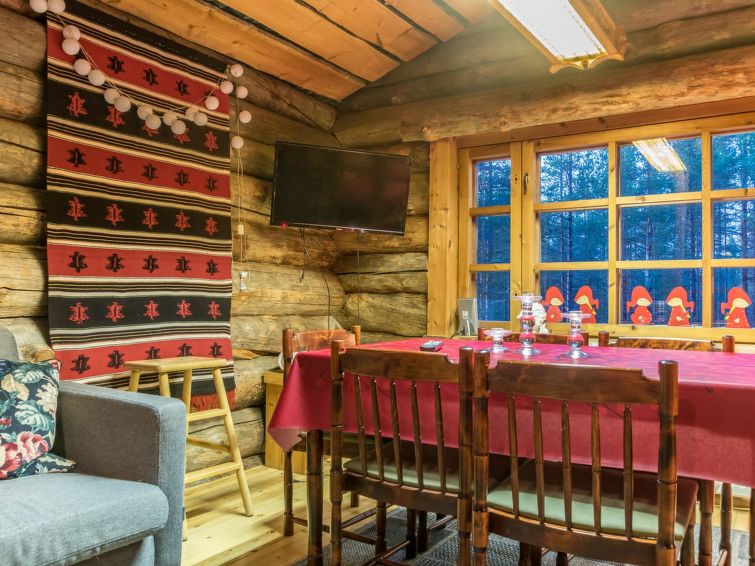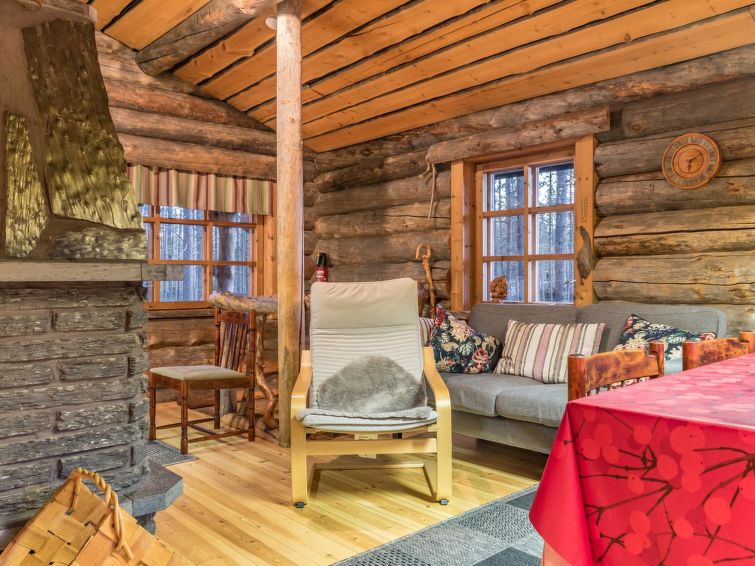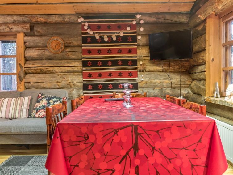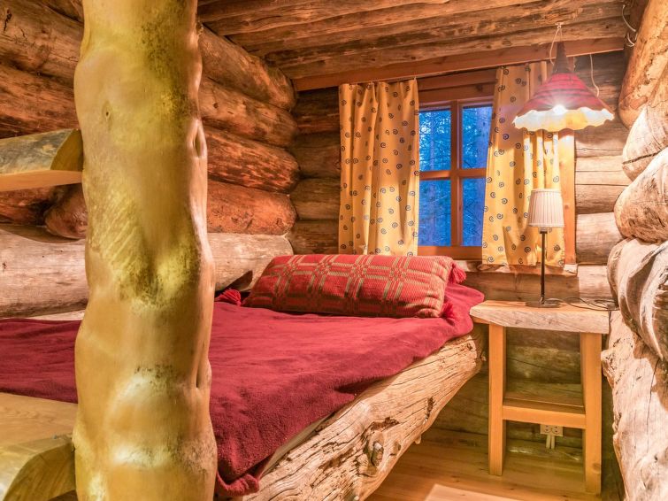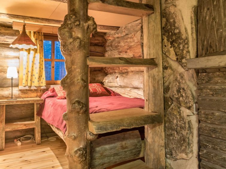A seperate two-storey log cottage located 165 km north of Rovaniemi, in Tieva in Ylläsjärvi-village. Built 1981. Upstairs kitchenette, livingroom, two alcoves (1 bed in each), low sleeping loft with 4 mattresses. Downstairs sauna, washing room, toilet. Extra fee for pets 40 e. Final cleaning is included in prices. Bed linen available for rent. Extra fee for pets.