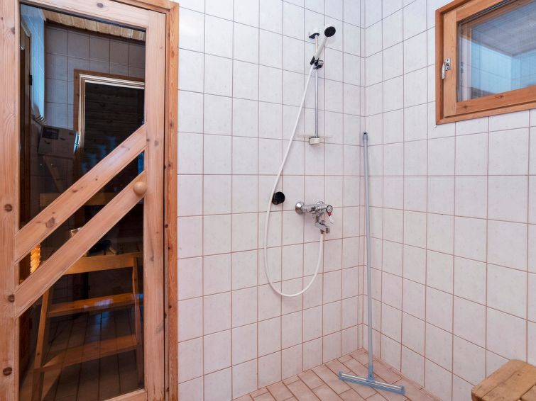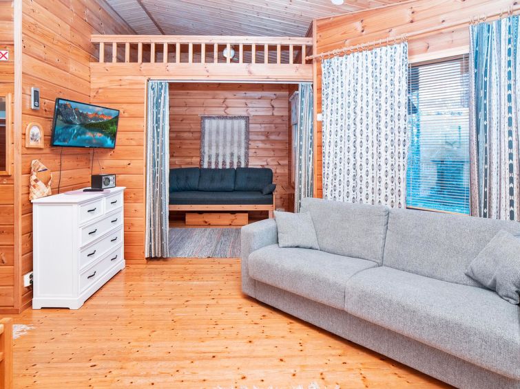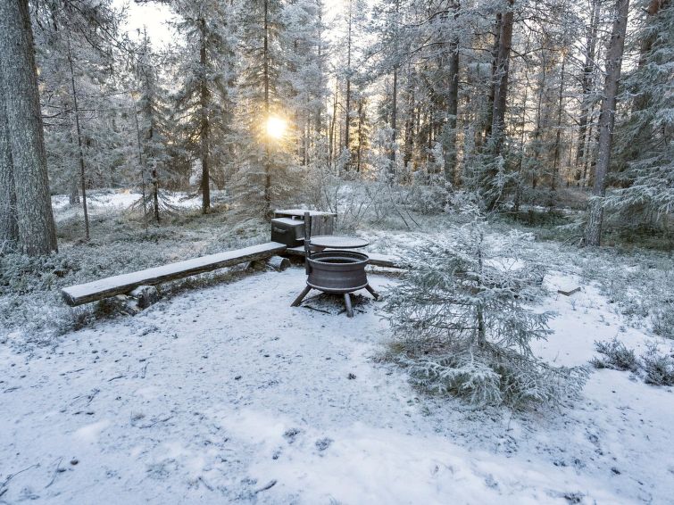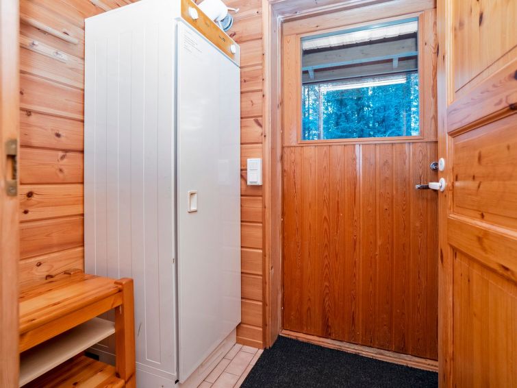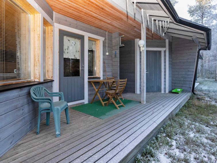 20 km north of Kuusamo, Ruka 9 km. Semidetached apartment built in 1994, living room with convertible bed , fireplace, kitchen, toilet, shower room, electric sauna, bedroom with double bed, sleeping alcove with convertible bed. Carport for one car. Roofed back terrace. Peaceful location, but only ca. 10 min. drive to the services and slopes of Ruka. Snowmobile route and ski trail are close. Campfire in the yard.