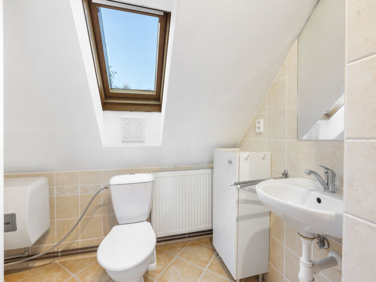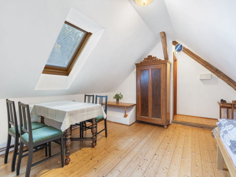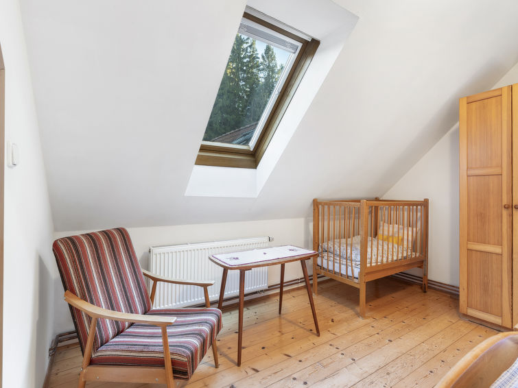 "Polžov", 5 rom hus 129 m2 på 2 etasjer. Romlig, koseligt møbler: stue med, 1 sovesoffa, vedovn, satelit-TV, radio og CD-spiller. 1 rom med 2 senger. Lekerom. Kjøkken (4 kokeplater, stekeovn, oppvaskmaskin, vannkoker, mikrobølgeovn, elektrisk kaffemaskin). Dusj/WC. øverste etasje: 1 rom med skråtak med, 1 dobbeltseng. 1 rom med skråtak med 2 senger og 1 dobbeltseng. Dusj/WC. El-oppvarming, vedoppvarming. Terrasse. Terrassemøbler. Fasiliteter: vaskemaskin. Internett (trådløs LAN [WLAN], gratis). Velegnet for familier. Max kjæledyr/små hunder tillatt 2 kjæledyr/små hunder tillatt.