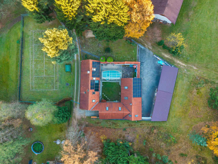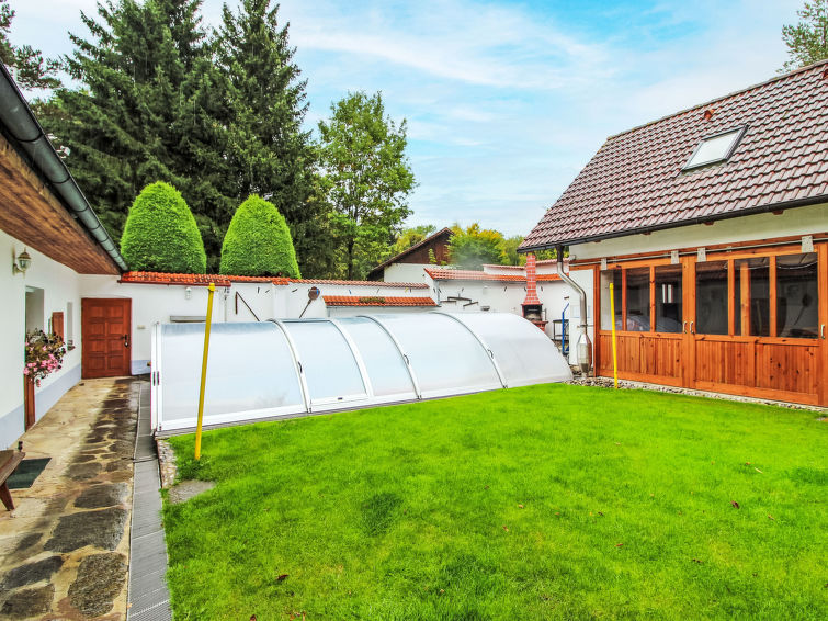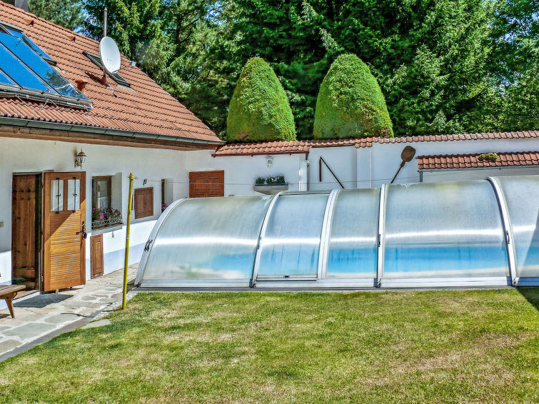 Polžov/Mokrý Lom 10 km fra Trhové Sviny: Hus på landet. Privat: tomt 900 m2 (inngjerdet) med plen 1'000 m2, svømmebasseng (4 x 7 m, dybde 150 cm, Sesongåpent: 01.Mai. - 30.Sep.). Tennis, bordtennis, basketball, terrasse, hagemøbler, grillhus. I huset: sykkelrom, vaskemaskin. Tilgjengelig: sykler (3). Parkering (for 2 biler) på tomten, privat garasje. Butikk 5 km, supermarked 9 km, restaurant 4 km, bussholdeplass "Mokrý Lom" 1.9 km, utendørs svømmebasseng 20 km, innendørs pool 20 km, badevann "Římov" 5 km. Golfbane 20 km, turstier fra hbrukt, sykkelvei 20 m. Attraksjoner i nærheten: Zřícenina hradu Pořešín, Buškův hamr 15 km, České Budějovice 20 km, Středověká tvrz Žumberk, Český Krumlov 22 km, Třeboň 34 km, Lipenská přehrada 40 km, Linz (AT) 85 km.