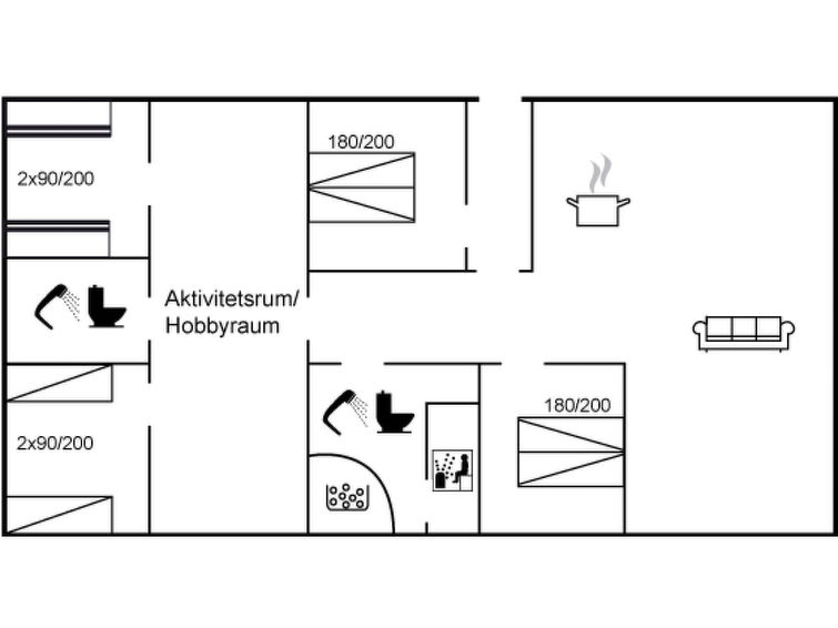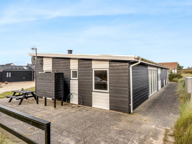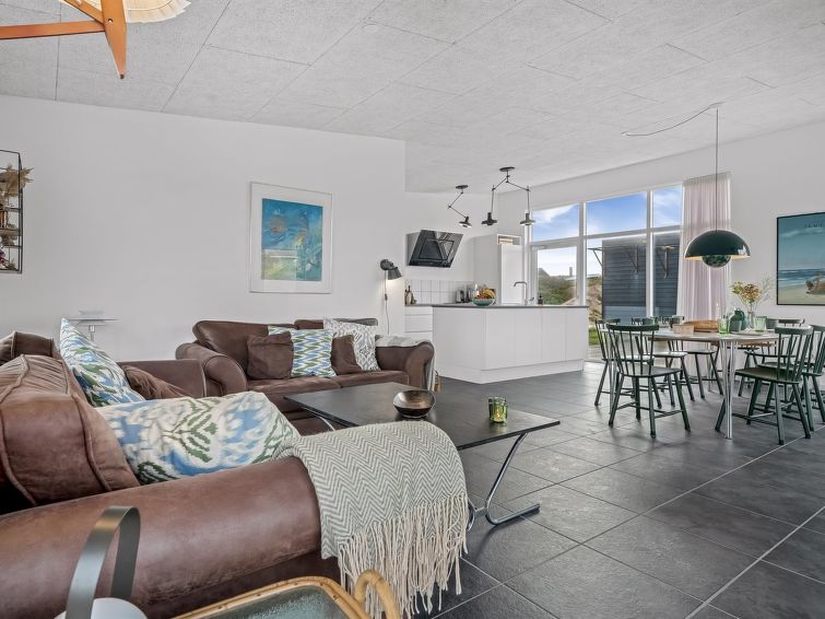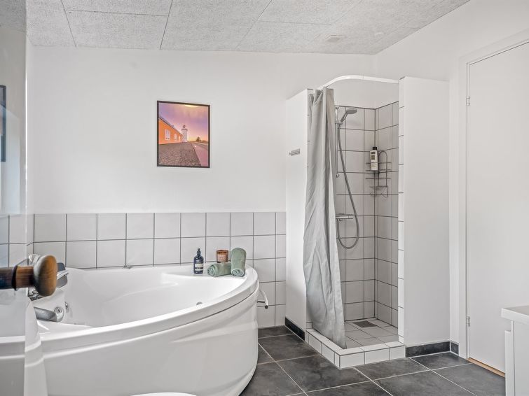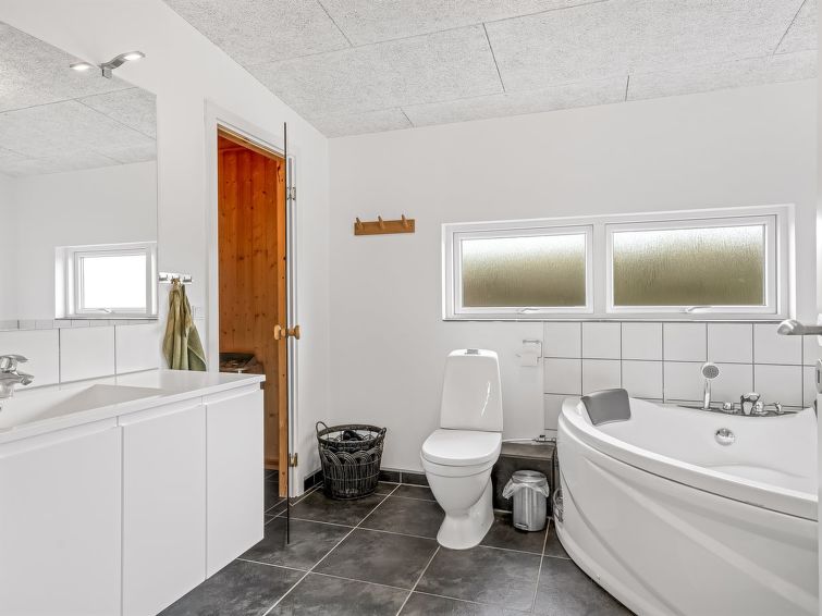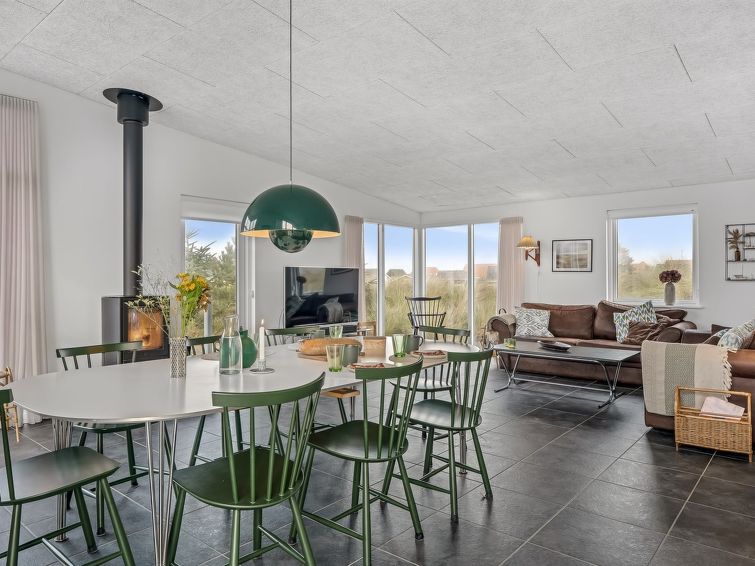 "Pontus" - 400m from the sea in NW Jutland", 4 rom hus 150 m2. Passer for 10 voksne. Stue med, TV og radio. 1 rom med, 1 dobbeltseng. 1 rom med, 1 dobbeltseng. 1 rom med, 1 dobbeltseng. 1 rom med, 2 x 2 køysenger. Kjøkken (stekeovn, oppvaskmaskin, 4 keramiske kokeplater, mikrobølgeovn, frys). 2 dusjer/WC, boblebad. Terrasse 12 m2, dekt. Fasiliteter: høy barnestol. Internett (trådløs LAN [WLAN]). Vennligst merk: røykfri bolig. Max kjæledyr/små hunder tillatt 2 kjæledyr/små hunder tillatt.