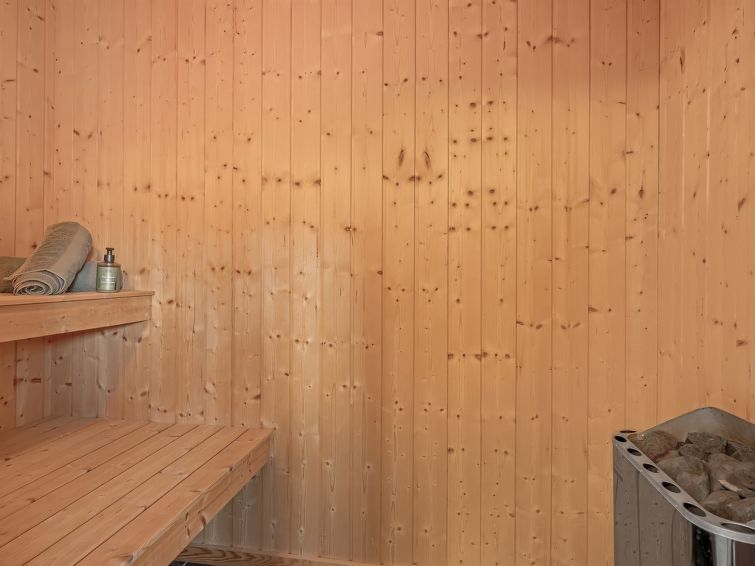 Enmannsbolig, bygget i 2014. 400 m fra sjøen. Privat: uberørt tomt 1'400 m2. Terrasse (139 m2). I huset: badstu, vaskemaskin, tørketrommel. Parkering ved hbrukt. El-ladestasjon. Daglivarehandel 200 m. Eieren godtar ikke noen ungdomsgrupper.