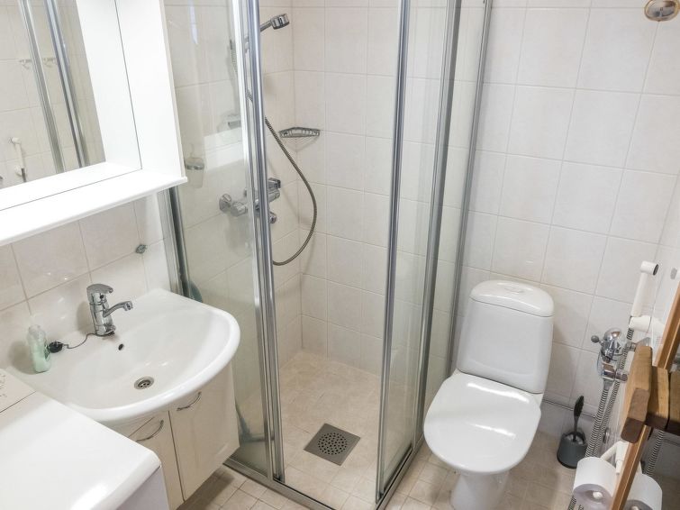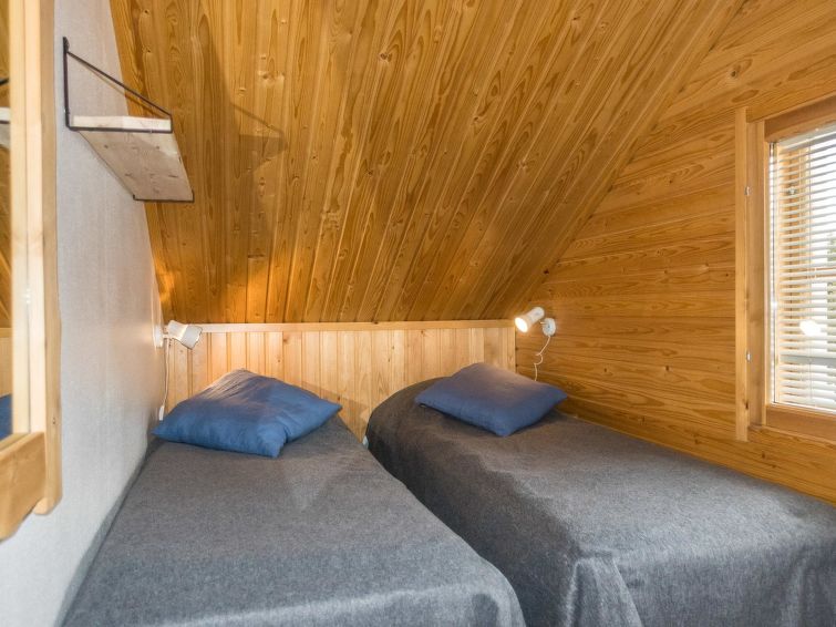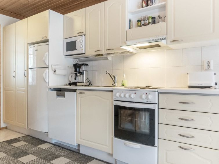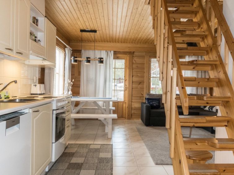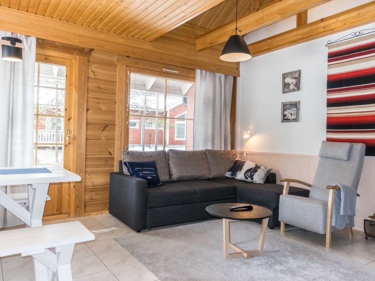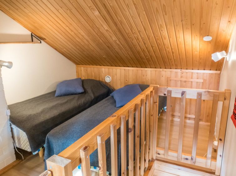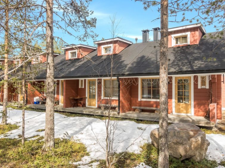 Log-built gable apartment in a row house, built in 2002. Living room/kitchen with sofa bed, sleeping alcove with 2 beds in connection with loft, 2 beds in loft, steep stairs to the loft, sauna, washroom/WC, shower cubicle in washroom, small terrace and storage. The apartment is located within walking distance from the Levi tourist center. For example, shops Levi market/S-market - 400 meters, ski slopes - 700 meters.