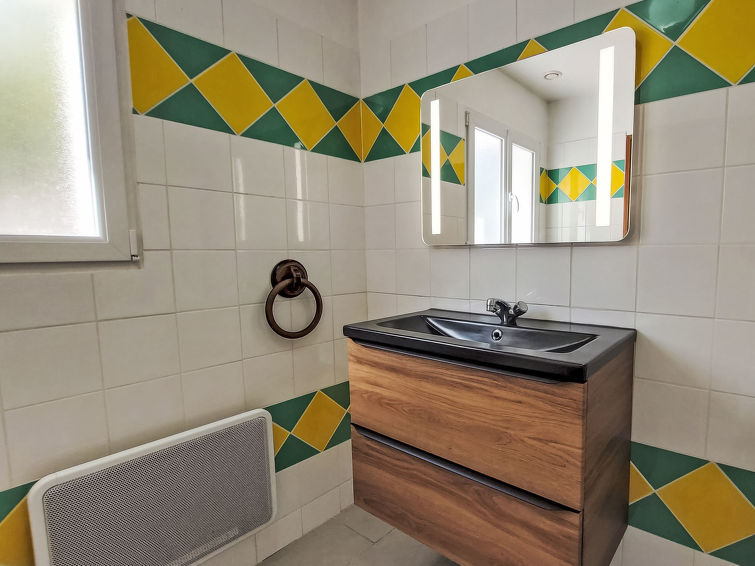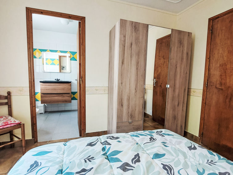 "Pors Ar Goff (PNG102)", 6 rom halvpart av tomannsbolig 170 m2 på 2 etasjer. Enkelt og rustikt møbler: stue/spisestue med, åpen peis, spisebord og satelit-TV. Utgang til hagen. 1 rom med, 1 dobbeltseng (140 cm, lengde 180 cm), dusj/WC. Åpent kjøkken (1 kokeplate, stekeovn, oppvaskmaskin, 3 gassbrennere, brødrister, vannkoker, mikrobølgeovn, frys, elektrisk kaffemaskin) med liten spisebord. Sep. WC. El-oppvarming. øverste etasje: 3 rom med skråtak, hvert rom med 2 senger (90 cm lengde 180 cm). 1 rom med skråtak med 1 seng (90 cm lengde 180 cm), 1 dobbeltseng (140 cm, lengde 180 cm). Dusj, sep. WC. El-oppvarming. Terrasse. Terrassemøbler, grill (flyttbar), liggestoler (4). Fasiliteter: vaskemaskin, tørketrommel, høy barnestol barneseng. Internett (trådløs LAN [WLAN], gratis). Vennligst merk: røykfritt hus. Kjæledyr/små hunder tillatt 2 kjæledyr/små hunder tillatt. Røykvarsler.