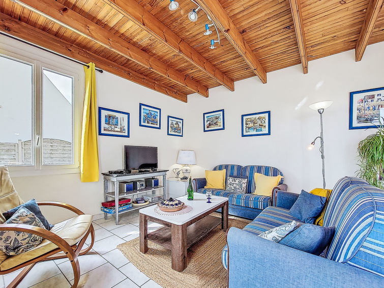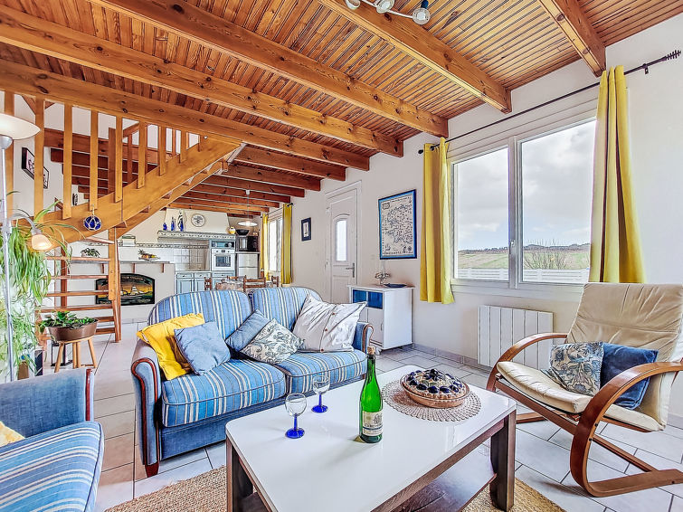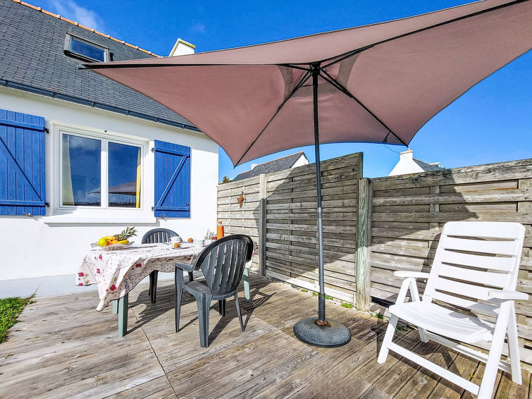 Enmannsbolig "Pors Bae". I området Kermalero 1.5 km fra sentrum av Primelin, 7 km fra sentrum av Audierne, 200 m fra sjøen. Privat: tomt 300 m2 (inngjerdet) med plen, parkering (for 2 biler) på tomten. Supermarked 600 m, restaurant 1 km, sandstrand "Plage du Loc'h" 500 m småstenstrand 200 m. Sporthavn 7 km, surfeskole 6 km, seileskole 7 km. Attraksjoner i nærheten: Pointe du Raz 7 km, Baie des trépassés 6 km, Audierne, Douarnenez. Turstier Cap Sizun.