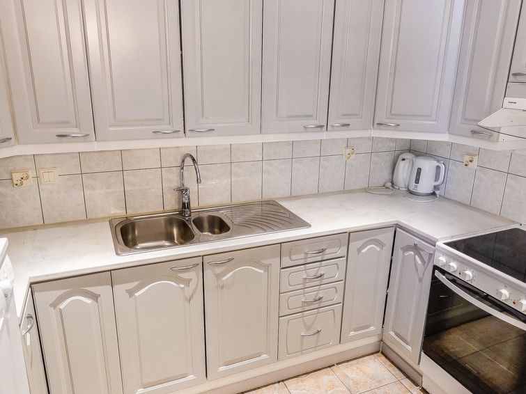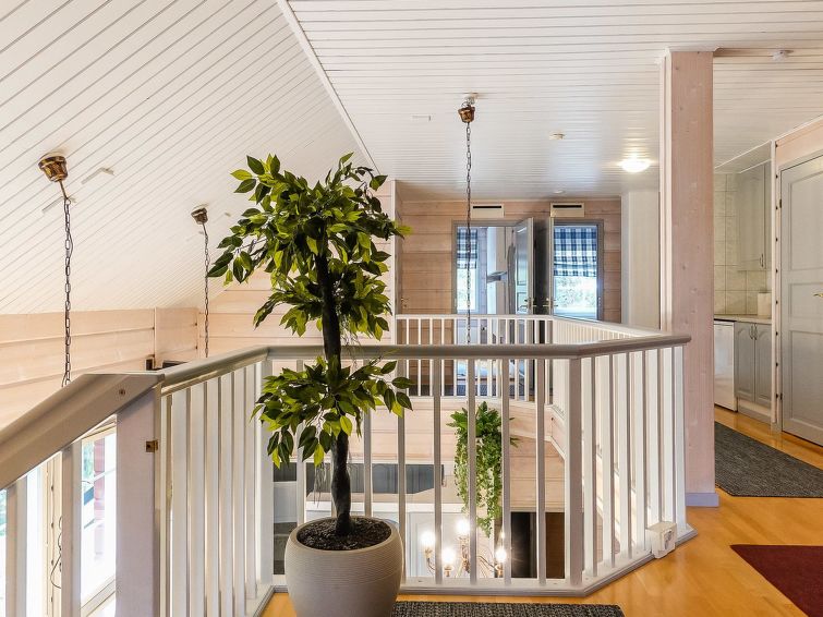 On the ground floor: large living area, open kitchen, 3 bedrooms, double bed in each, 2 foldable extra beds (from wall) in every bedroom. Two of bedrooms have common WC area with shower (access from both bedrooms). Large sauna, washroom (3 showers), dressing room and 2 toilets with shower.