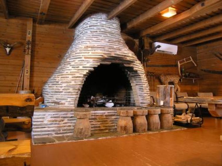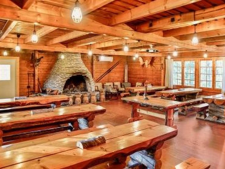 Cottage living area is 194 m², on one level. There has a large 70-seat room with a huge natural stone fireplace. Wide 30 m² terrace. There is a separate kitchen (dinner set for 70 persons). Six bedrooms with bunk-beds, total for 16 persons. There is 3 x indoor WC. From some of the bedrooms entrance to the living room and other common spaces is from outdoors.