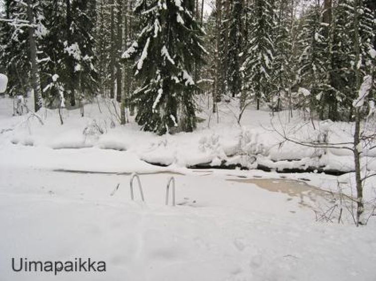 Behind the cottage is small flowing creek, there located in log wooden sauna (52 m²). Sauna has a spacious living room with fireplace / dressing room, 2 showers, sauna (electric stove) at one time for up to 12 people. Porch / patio area and a separate eco toilet. Possibility of swimming in the stream (distance 3 m), swimming ladder (steep descent into the creek, hard, deep ground). Sauna with cold and hot water + electricity.