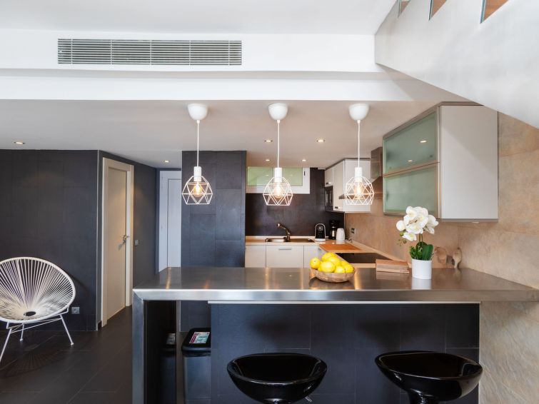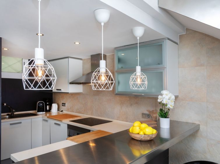"Punta Aromir", 5 rom leilighet 116 m2. Romlig og lys, meget praktiskt og koseligt møbler: stue/spisestue. Stort, åpent kjøkken (stekeovn, oppvaskmaskin, 4 induksjonskomfyr, mikrobølgeovn, frys, elektrisk kaffemaskin) med, spisebord. Utgang til terrassen. Bad/WC. Oppvarmingsalternativ. øverste etasje: 2 rom, hvert rom med, 1 x 2 køysenger (90 cm, lengde 190 cm), 1 dobbeltseng (150 cm, lengde 190 cm). 1 dobblet rom med 2 senger (90 cm lengde 190 cm). 1 dobblet rom med, 1 dobbeltseng (150 cm, lengde 190 cm). Utgang til balkongen. Dusj/WC. Terrassemøbler, liggestoler. Hærlig panoramautsikt av havet. Fasiliteter: vaskemaskin, strykejern, høy barnestol barneseng for barn opp til 2 år, hårføner. Internett (trådløs LAN [WLAN], gratis). Vennligst merk: velegnet for familier. Bare TV ES. HUTG016117