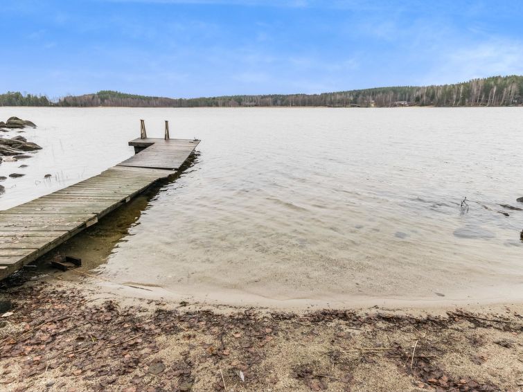37 km to the north from Hämeenlinna, lake Iso-Roine 20 m (length 8 km, width 2 km), shallow bottom, pier. There is a steep stairs down to the shore in front of the cabin, nature trail to the pier, where you can swim. Near the pier, there is a small sand shore where the smallest members of the family can swim. The shore deepens fast. There is a shallow child-friendly sand beach within 200 m from the cabin (shared with neighboring cabins).