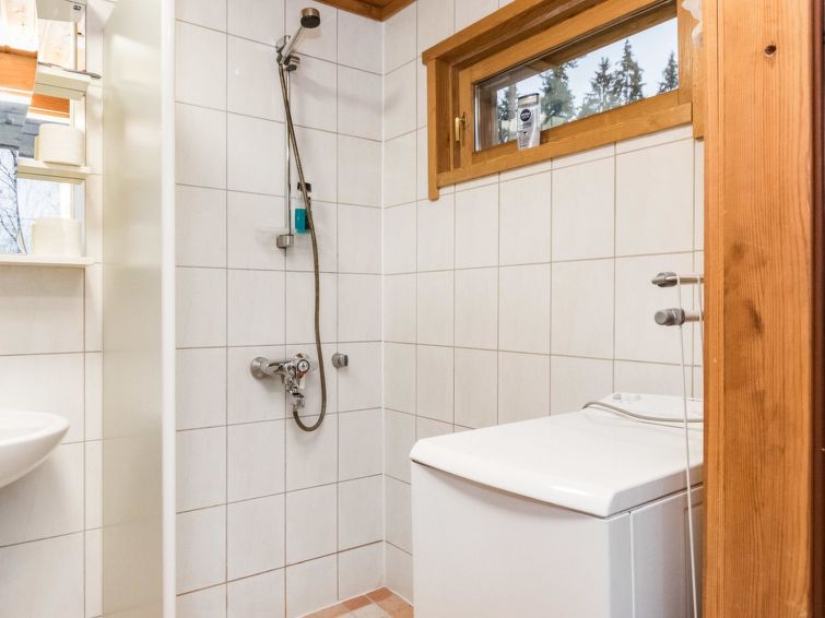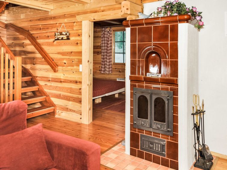 Log cabin 2006, living room / kitchen with sofa bed, 2 bedrooms with 2 beds in each (one downstairs, another upstairs), sleeping loft with 4 beds, wood-heated sauna, washroom, toilet downstairs and upstairs, covered porch.