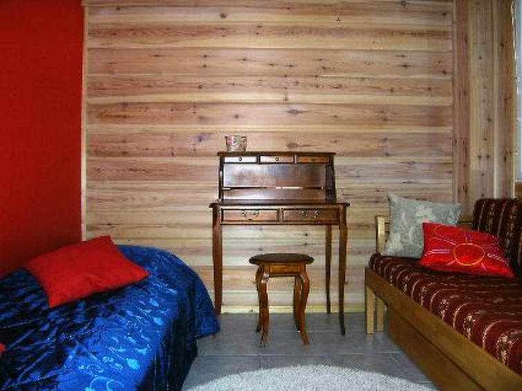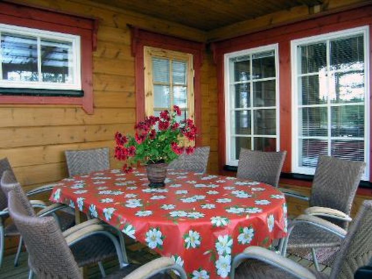 Log cottage 2010, kitchen, bedroom with double bed, bedroom with 2 beds, upstairs bedroom with 2 beds, hall (upstairs) with bed and double bed (120 cm), shower, electricsauna, 3 terraces.
