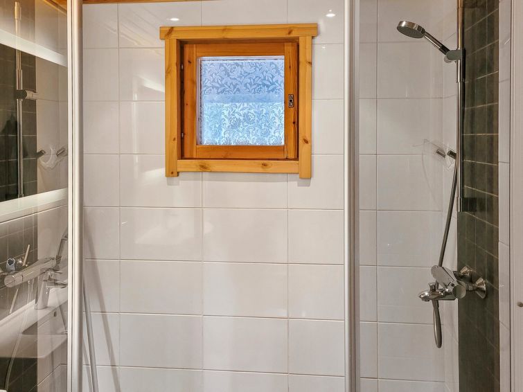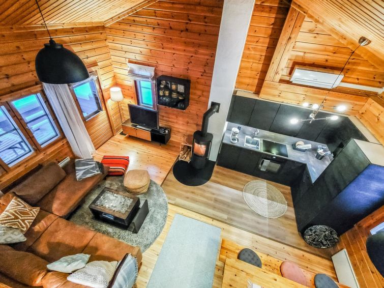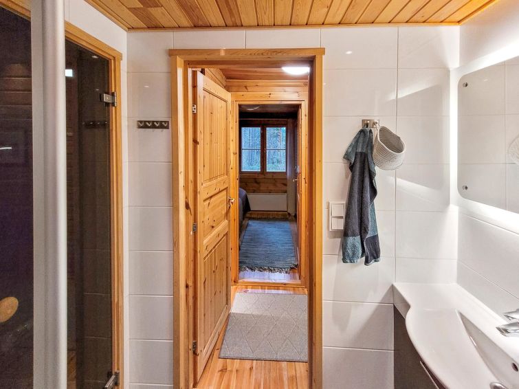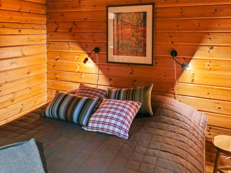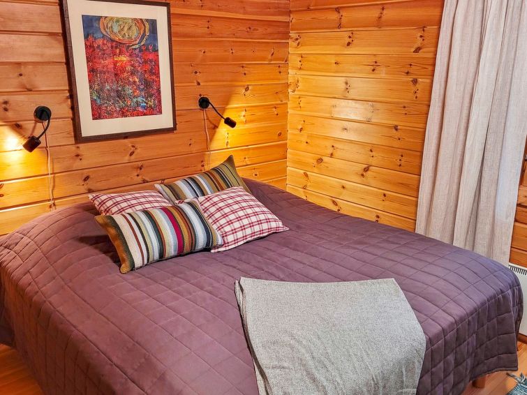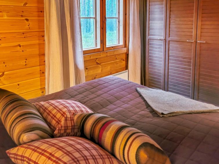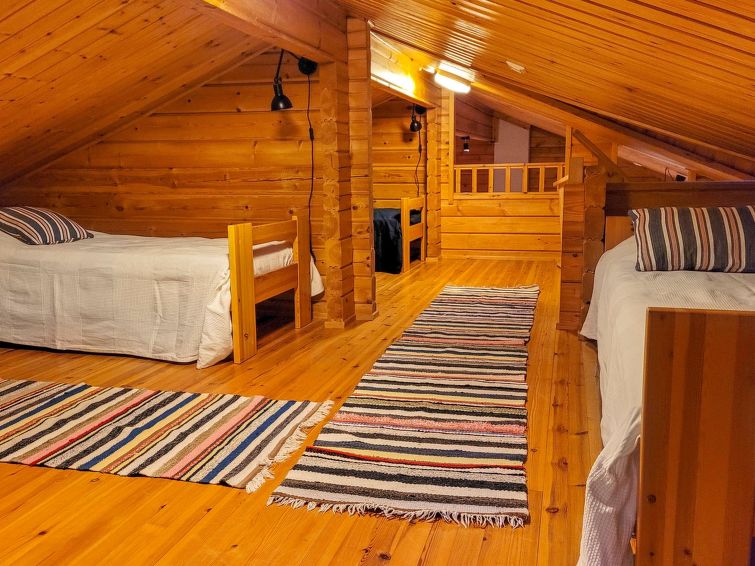 Log-built semi-detached house, built in 1990, he apartment's kitchen and living room have been renovated in early 2023. Living room / kitchen, bedroom 1: double bed (width 160 cm), bedroom 2: 2 beds, loft: 4 beds. Sauna (electric sauna stove) and washroom, open veranda.