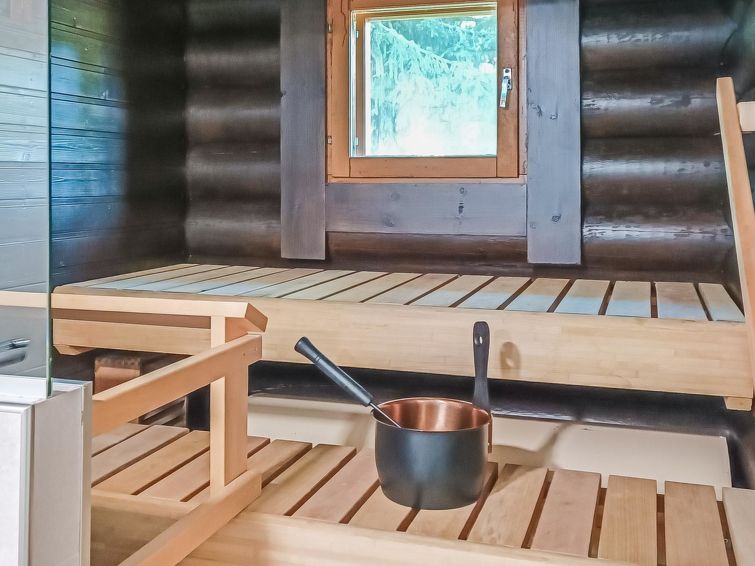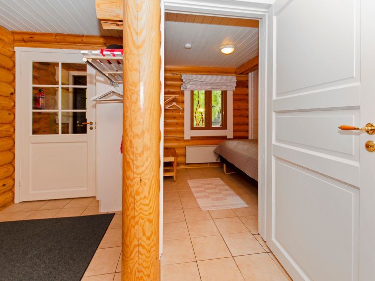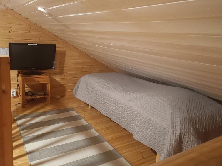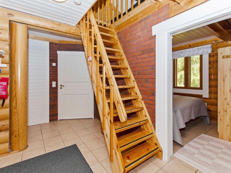 72 km to the north from Joensuu, lake Pielinen 250 m (871.2 km²), shallow public beach of the Purnuniemi holiday cabin area, which is full of boats. On the beach, there is a shared boat with the Purnutar B apartment. Apartment in a log-built semi-detached house 2000, living room-kitchen, bedroom with double bed, small bed room with one bed (width 90 cm), spacious loft with 4 beds, washroom, electric sauna, terrace. Available for rent to a maximum of 6 people.