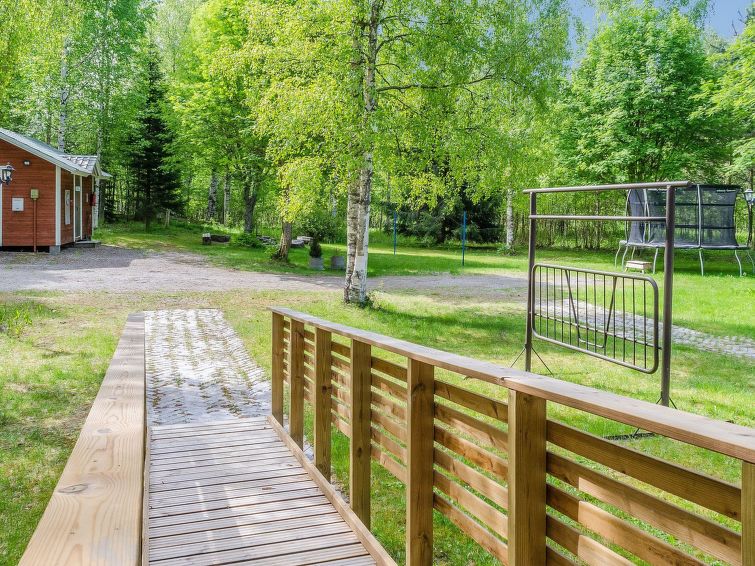 Well-equipped apartment in semi-detached house located in the Purnuniemi holiday cabin area by the lake Pielinen. Child safety gate in the loft (at the top of the stairs). In addition, there is a potty and two children's cutlery (cutlery, plates, mugs). Internet 4G Wi-Fi. On the terrace, furniture for 4 people and hammock. Trampoline (with safety net) shared with B-apartment and yard games.