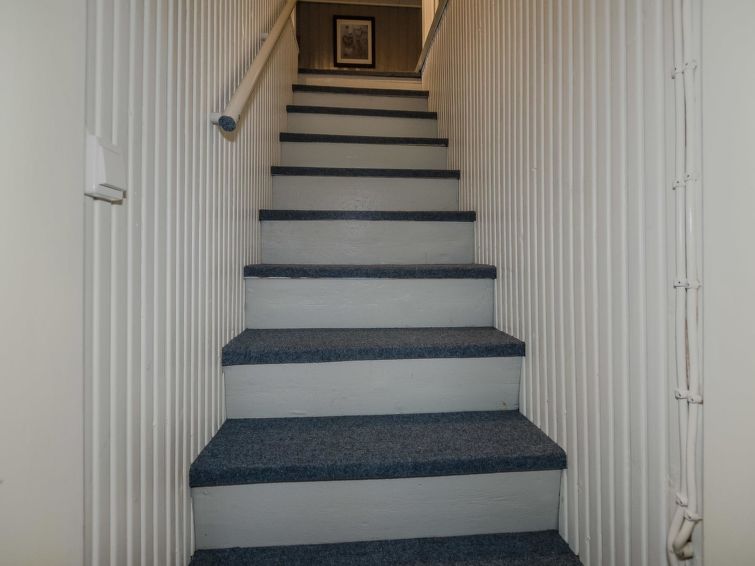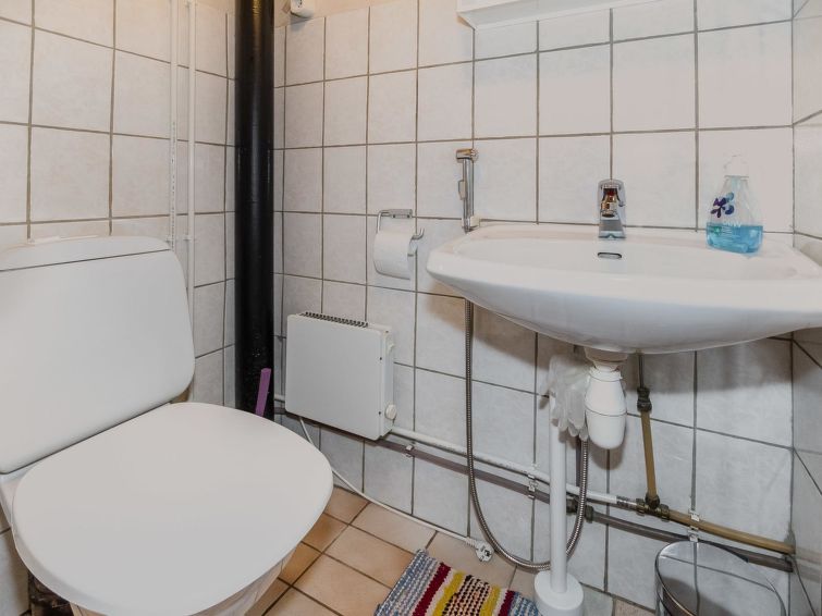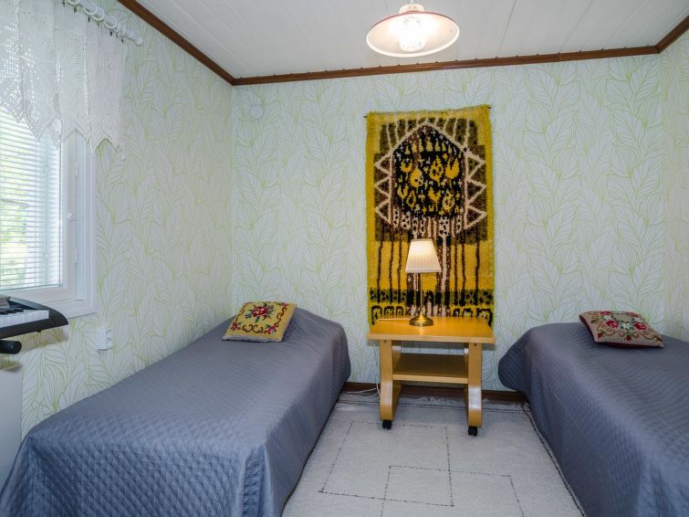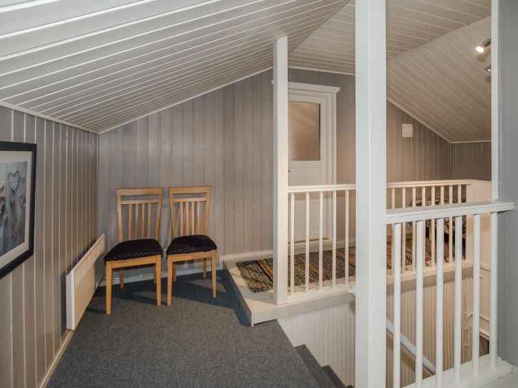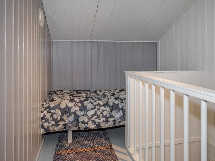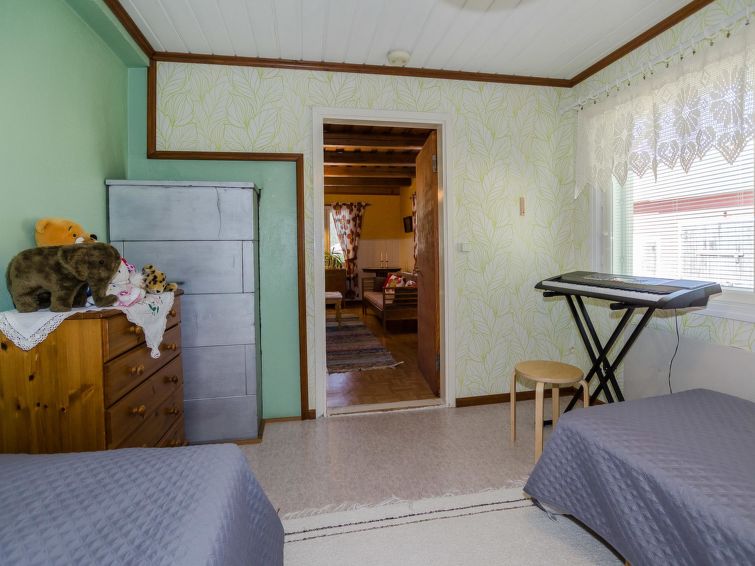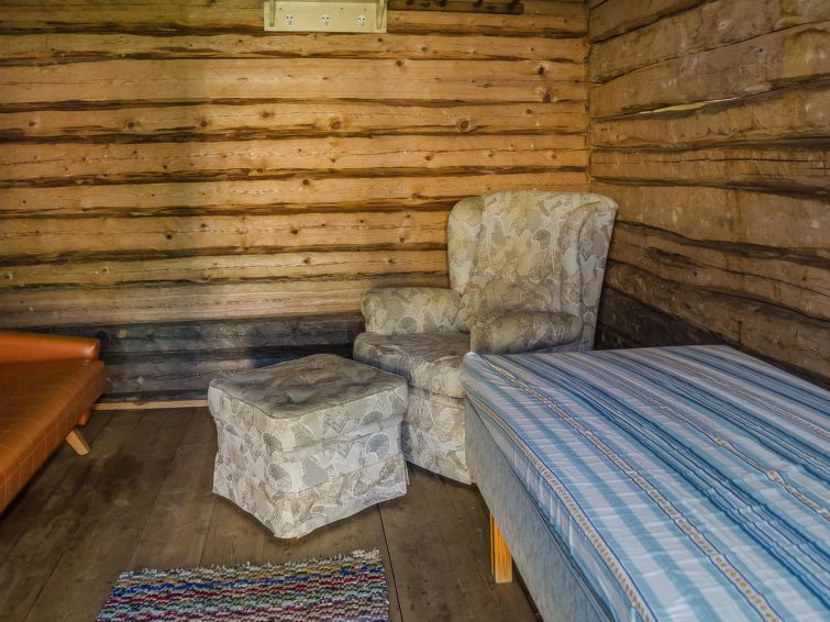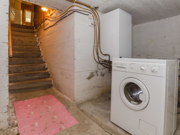 Living room/kitchen, bedroom with double bed, room with spreadable sofa bed, access to the bedroom with 2 beds from this room. Bedroom with bed, double bed and balcony on the upper floor. There is also a bed on the staircase on the upper floor. WC on both floors. On the upper floor wood-heated sauna, shower in steam room and dressing room. Washing machine in the basement. There are also entrance hall, porch and terrace.