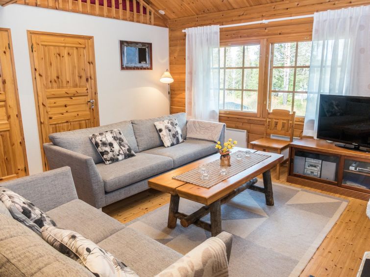 Additional information: Suitable for families. Wood-heated sauna on lake for summer use. Barbecue hut on the yard (heated with wood briquettes, not firewood). Connecting ski track to Ruka ski track network from week 8 until the end of skiing season. Connecting from cottage to the official snowmobile route (distance about 2.5 km).