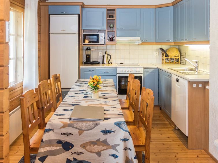 Additional equipment: Gas grill in summer use, water kettle, food mixer, egg cooker, 3 net fishing licences (no fishing nets), rowing boat (no life jackets), sledges, bobsleigh, snow gliders. Lockable storage. The owner rents out motorboat. You can also ask from the owner fishing nets, berry picking and fishing tours.