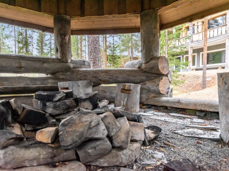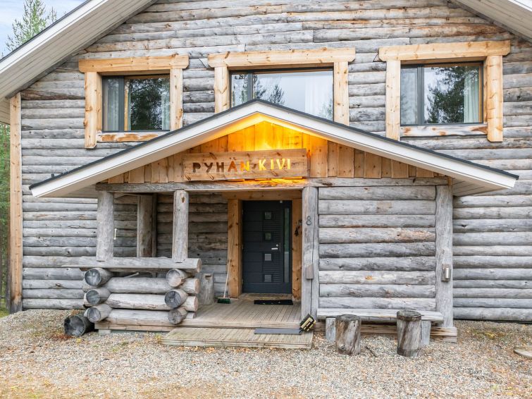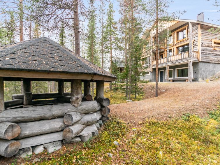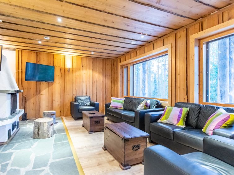 Roomy log cabin with a great view to the fell of Pyhätunturi. There are two fireplaces in the cabin; one in each living room, and 3D TV in each floor. Parking space for 8 cars, own fireplace outside next to the cabin.
