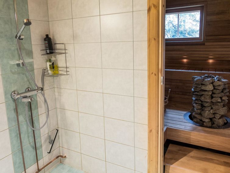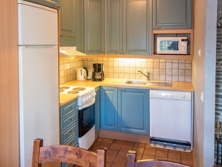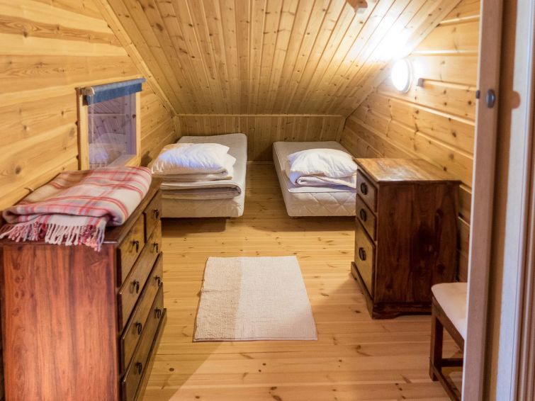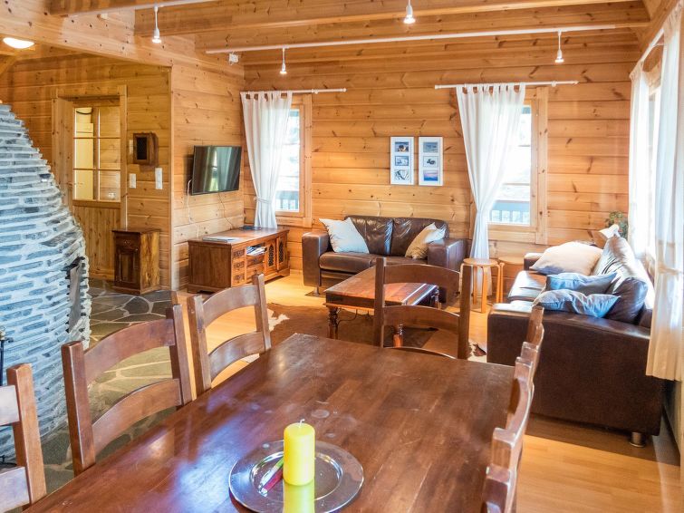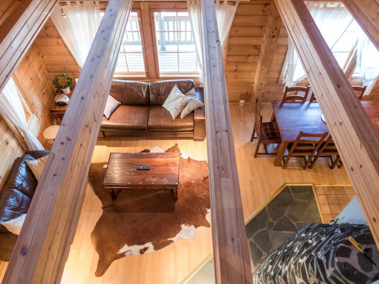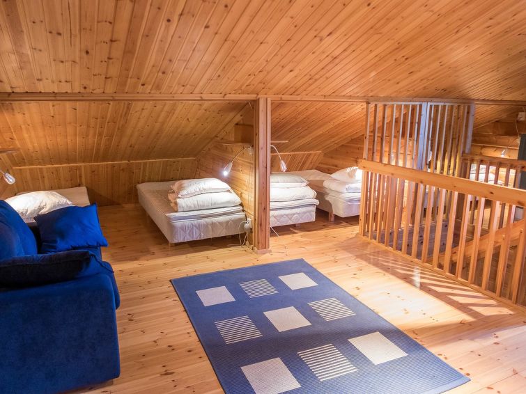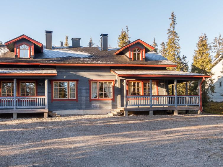 25 km north of Kuusamo. Semi-detached house, built 2005. Downstairs bedroom with 2 beds, sauna/washroom/wc, separate toilet, kitchen and living room. Spacious sleeping loft: 8 beds. Storeroom with e.g. rack for servicing skis. House is located in Eastern Ruka -area, closest ski-lift is approx 600 m away (Masto). During high season SkiBus runs approx. 150 m away.