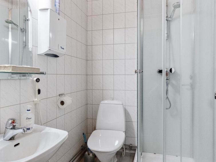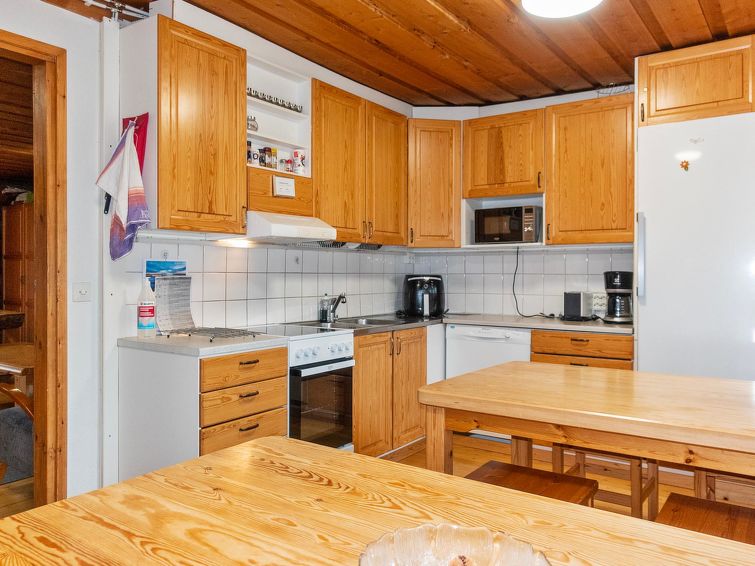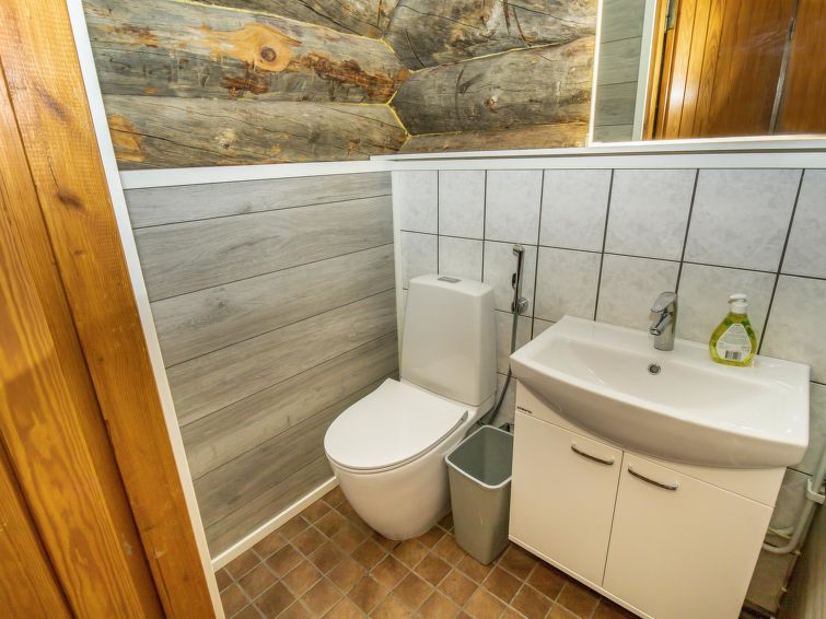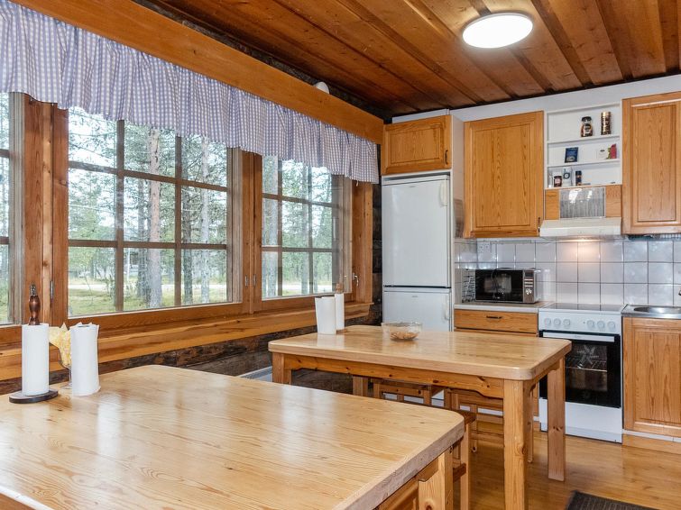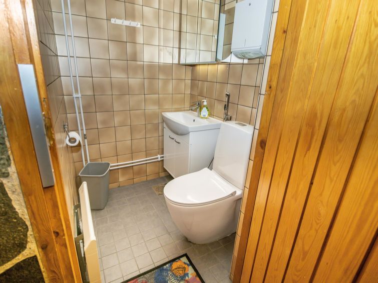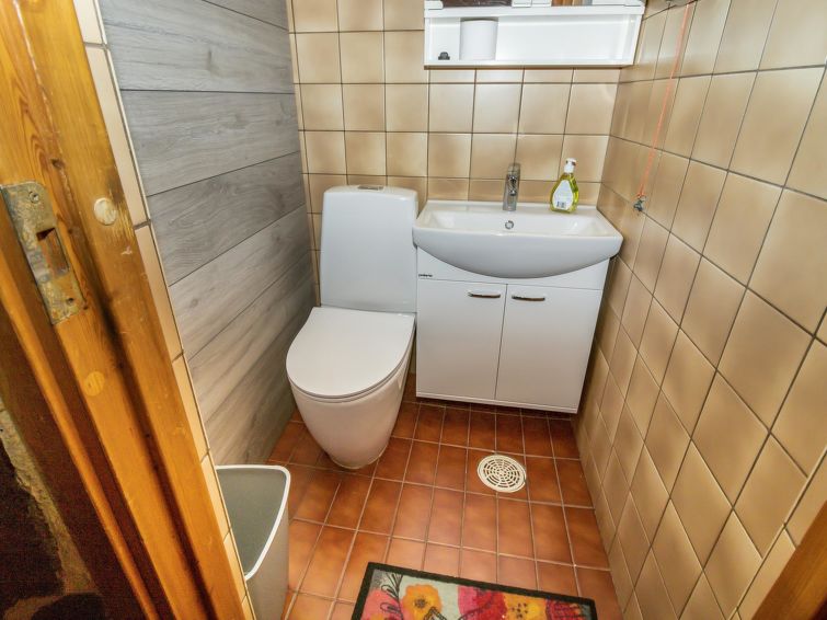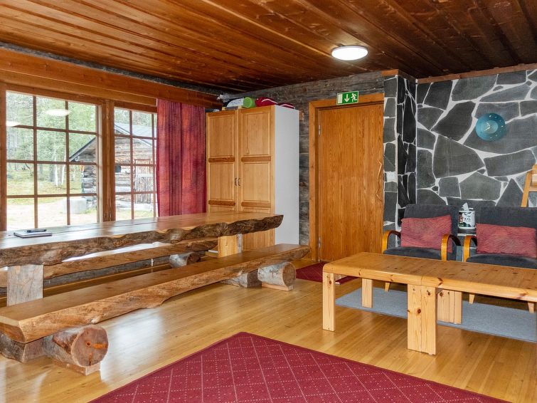 The cabin offers excellent kitchen, dining, and cold storage facilities. There are separate living and fireplace rooms, each with own fireplace and TV. Spacious sauna area with timer-controlled electric sauna stove is also available. Four WCs, one includes a shower cubicle. Technical room with two electric drying cabinets, drying rack, washing machine, and tumble dryer.