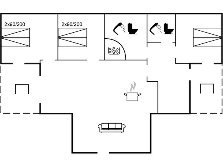 "Raakel" - 950m from the sea in NW Jutland", 3 rom hus 95 m2. Passer for 6 voksne. Stue med, TV. 1 rom med 2 senger. 1 rom med 2 senger. 1 rom med 2 senger. Kjøkken (stekeovn, oppvaskmaskin, 4 keramiske kokeplater, mikrobølgeovn, frys). 2 dusjer/WC, boblebad. Terrasse 35 m2, dekt. Fasiliteter: høy barnestol barneseng (ekstra). Internett (trådløs LAN [WLAN]). Vennligst merk: røykfri bolig.