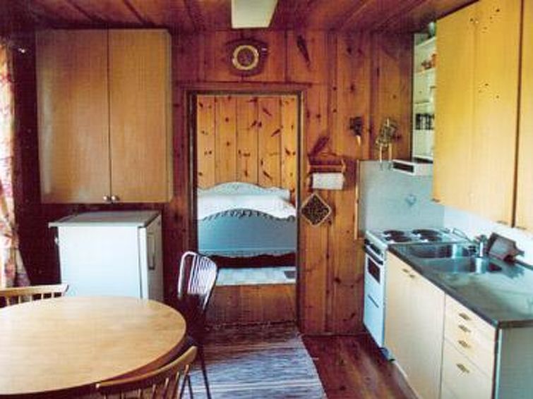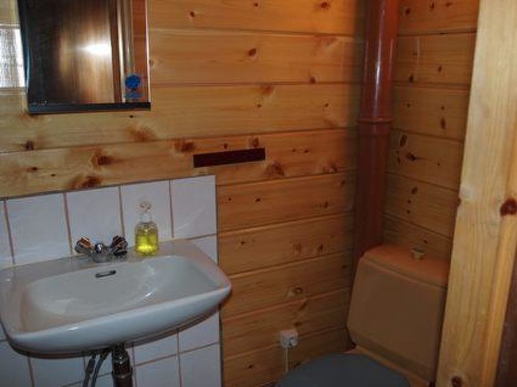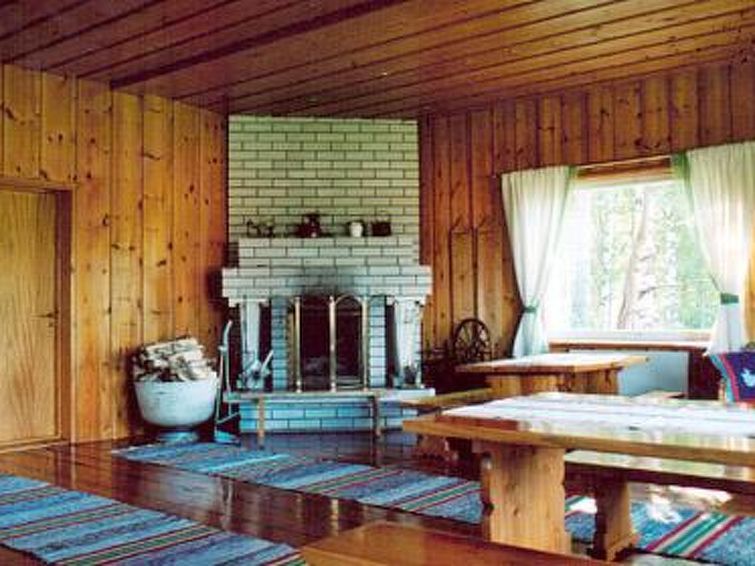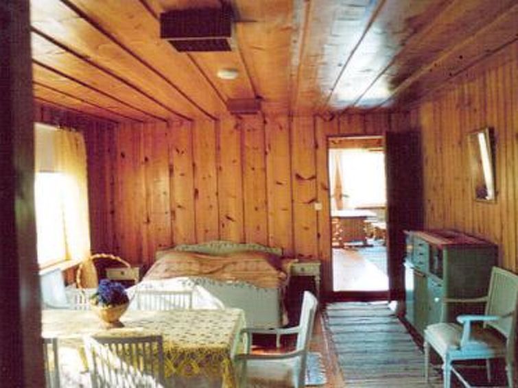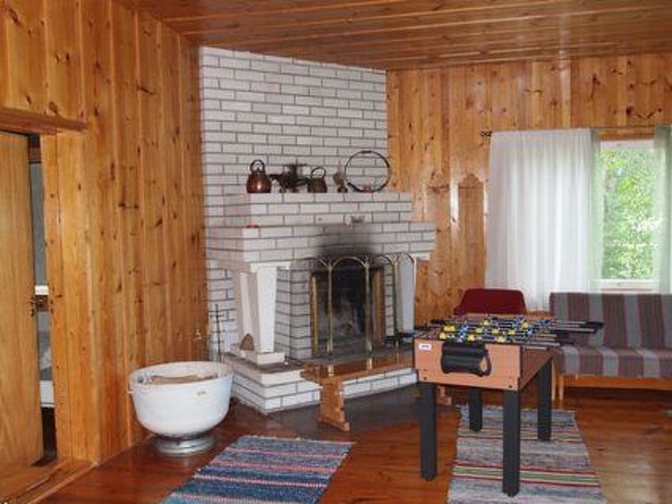 Log house 1973, kitchen, living room with 1 bed, 2 bedrooms with double bed in each, bedroom with double bed + 1 bed. Upstairs: sauna, washroom and WC. In summer own separate wood-heated sauna in the yard, hearth room, washroom, hot and cold running water, shower. Outside power point for cars.