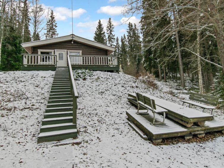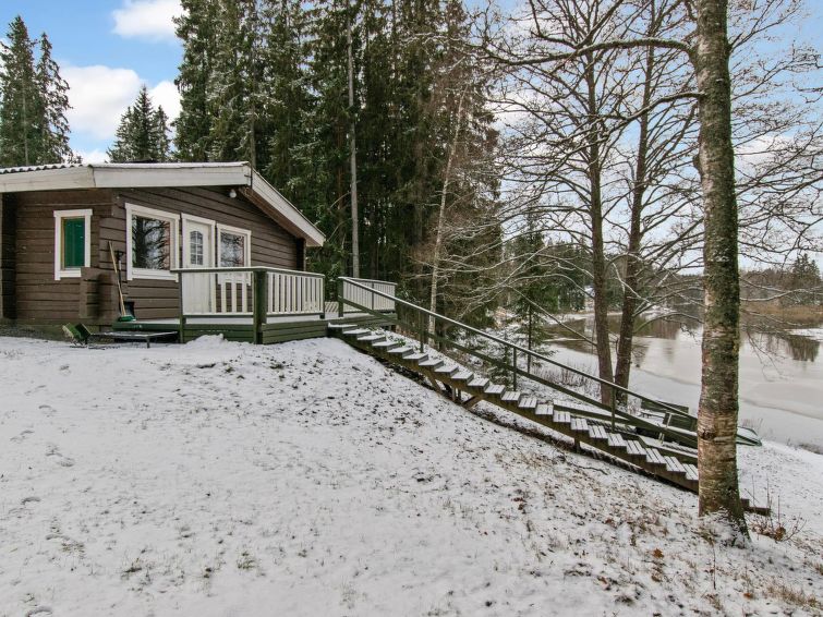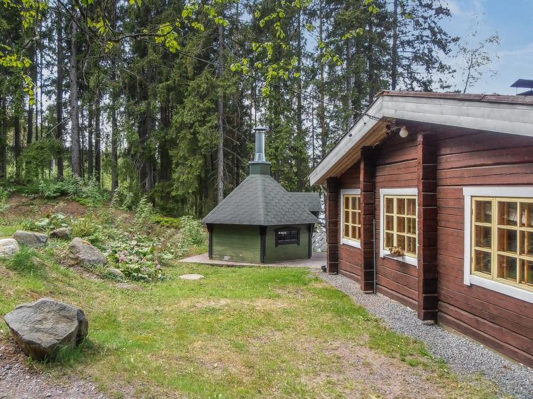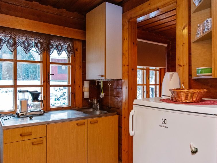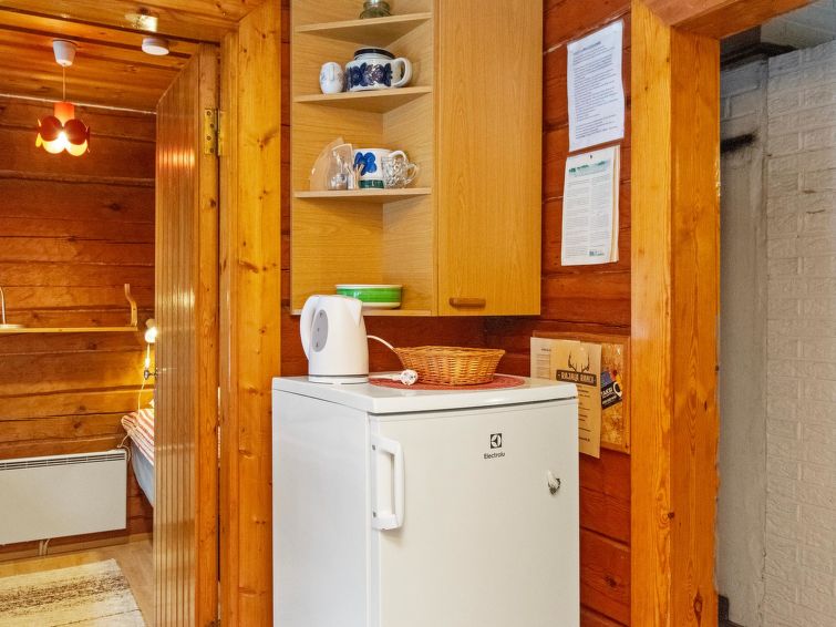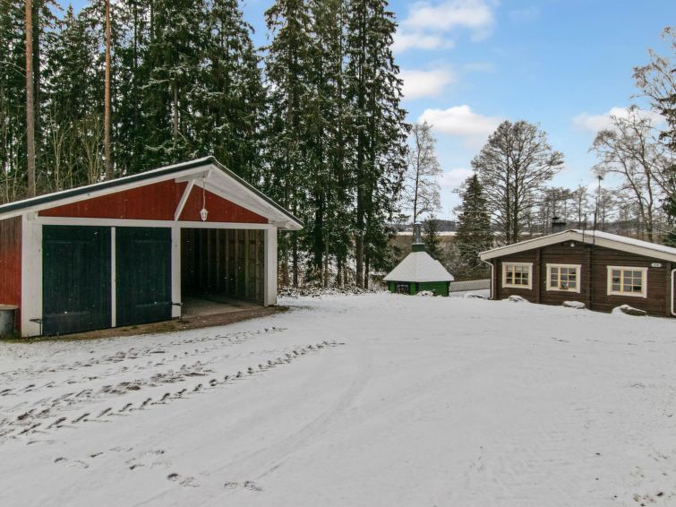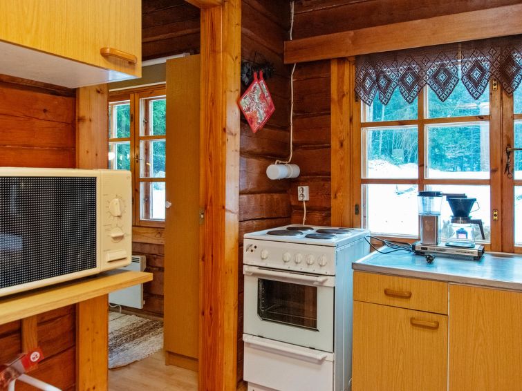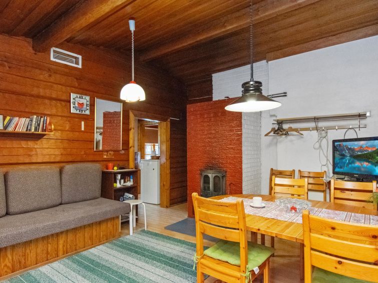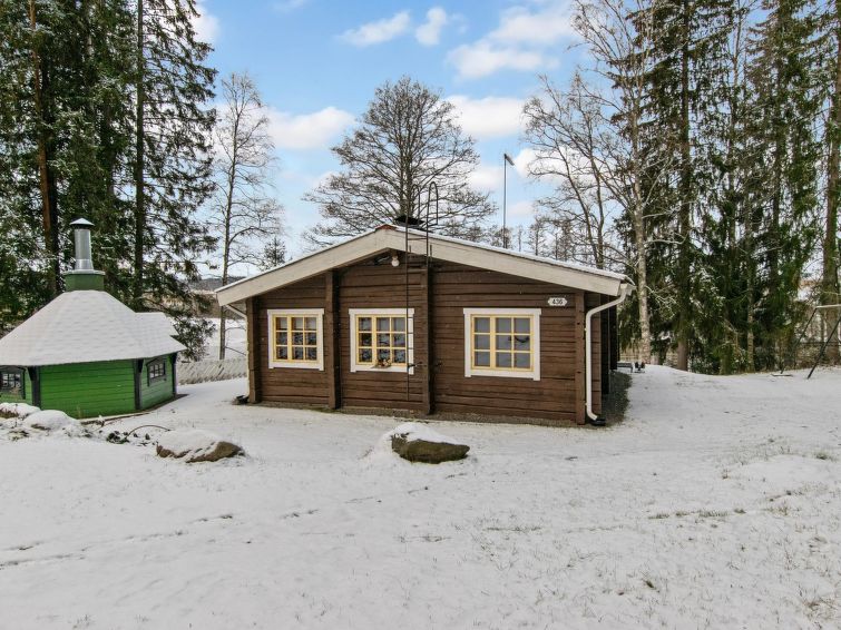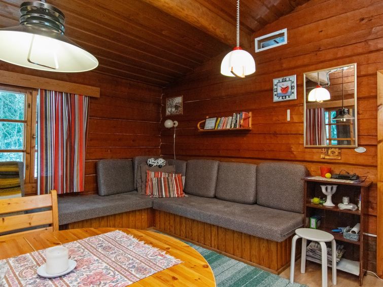 Log cabin 1974, living room with 2 extra beds, 2 bedrooms with 2 beds in each, kitchen, sauna, dressing room, veranda. Car shelter.