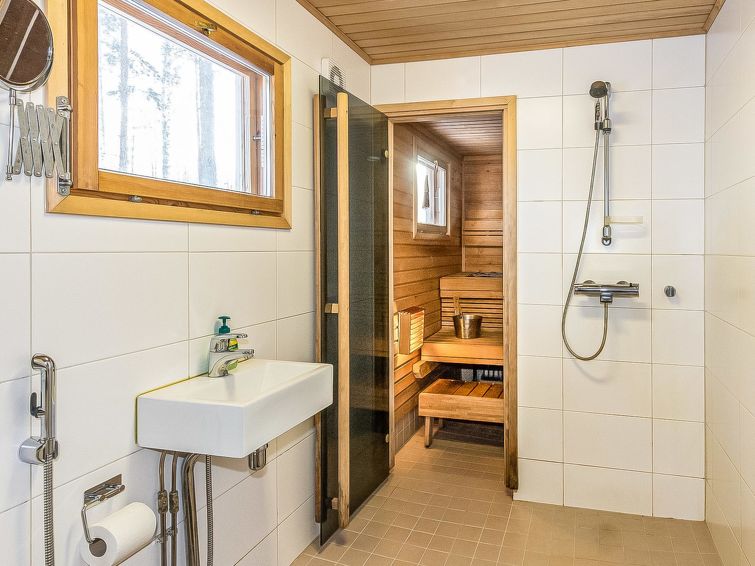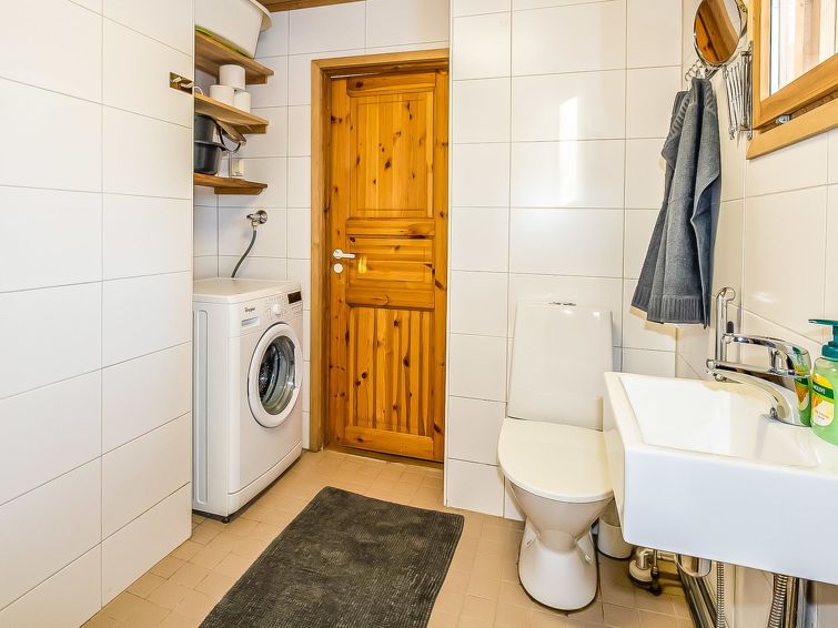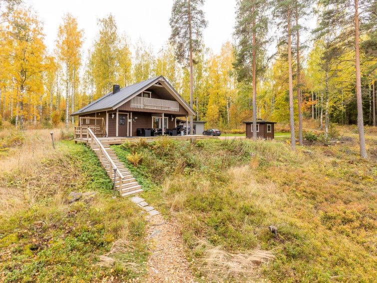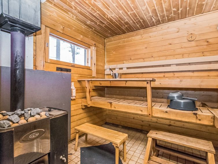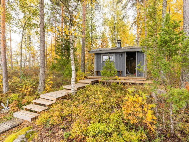 Log cabin 1997, renovated 2015, living room/kitchen, bedroom with 2 beds, washing room (where also toilet), separate toilet, dressing room/foyer, sauna (electric stove), open veranda.