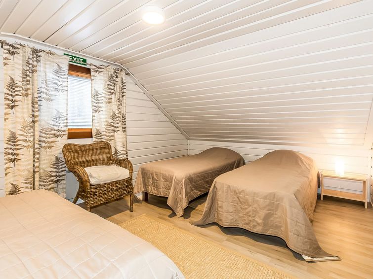 Modest lakeside sauna, no running water. Spacious cottage with 3 bedrooms and a sleeping loft, idea for family with children/2 families together. Cottage located on shore of southern part of Lake Päijänne at Salonsaari, Asikkala. Own shore and peaceful yard area with barbecue grill facility. In yard roofed barbecue grill with electric grill, also close to shore a grill facility with seating.