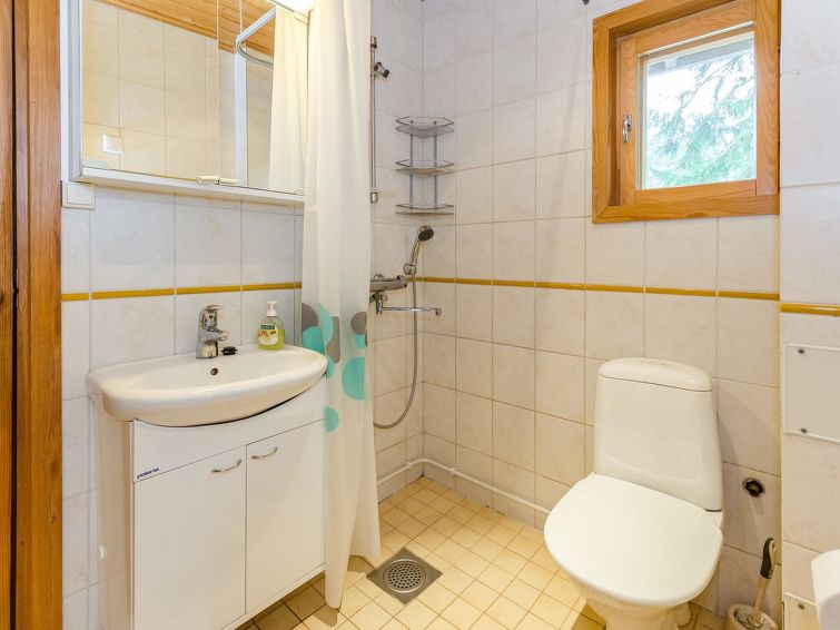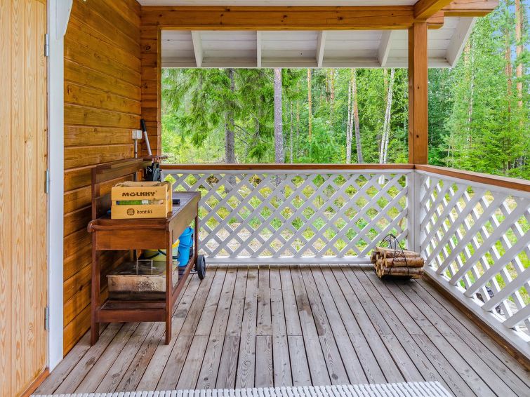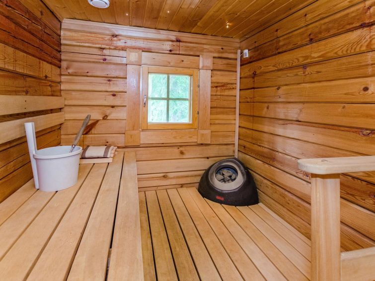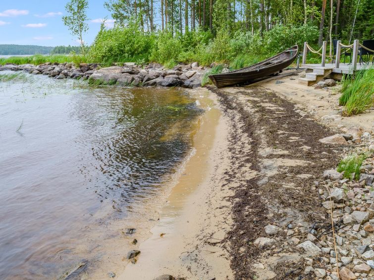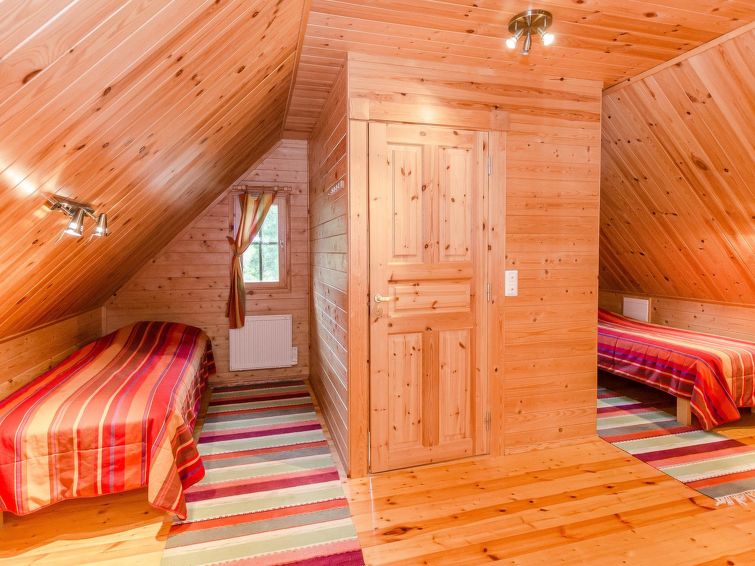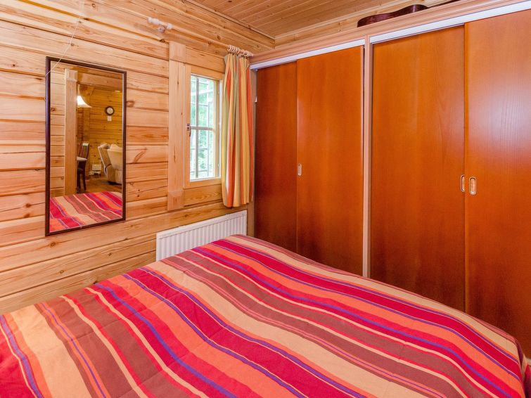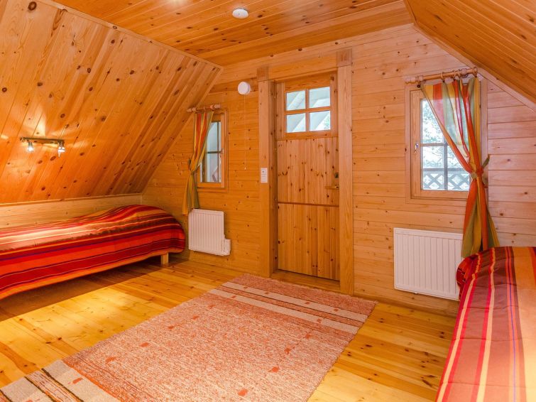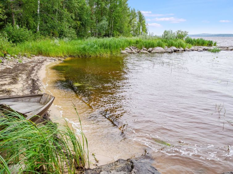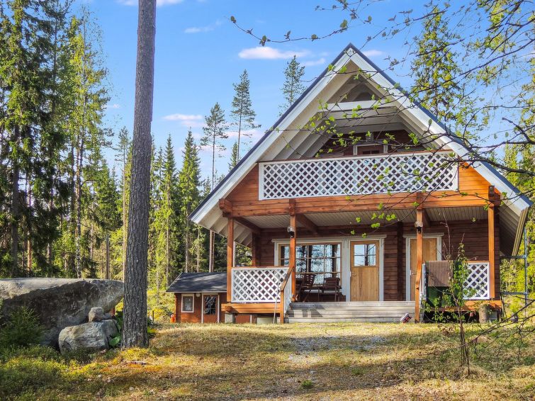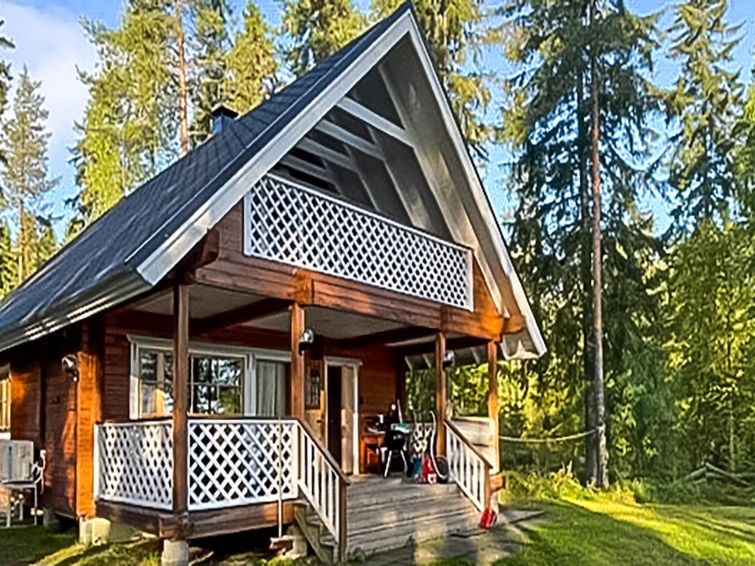 116 km north of Joensuu, 18 km northwest of Lieksa, Lake Viekijärvi 20 m (24,81 km²), shallow sandy shore facing northeast, own shore, own boat. Log cottage 2006, kitchen-living room, bedroom with double bed, upstairs (25 m²) 4 beds, washroom, electric sauna, spacious terrace, balcony. High standard log cottage next to cottage 1368/Metsäranta, by the lake Viekijärvi which is rich in fish. The lake area is 24.8 km² and it flows into the lake Pielinen. Viekijärvi fishing licence for the lake included. The owner can rent an outboard motor (4 HP). The cottage is located on flat plot with gentle slope to shore. Fireplace-baking oven in the cottage. Underfloor heating in the washing room and toilet. The sauna benches are made of alder. Kattle grill (please, notice that customer brings charcoal). Electric hook-up for 4 cars.