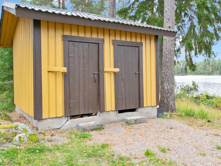 Wood shed, storage building. Gas grill and charcoal grill. Traditional cottage on a level, grassy plot with pine. Good beach for families with children.