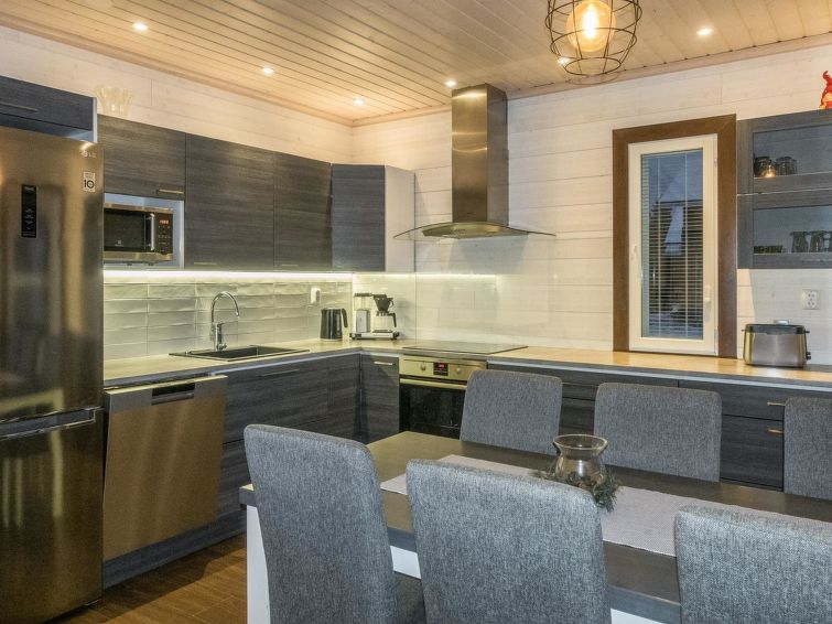 Rantatähti is a true gem by the shore, offering a perfect blend of comfort and a natural ambiance. This magnificent villa is situated by the water, providing beautiful views of the lake, while being only a short distance away from the diverse services of the Ski Resort Iso-Syöte.