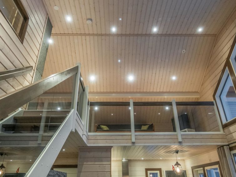 The villa's covered terrace invites guests to enjoy the outdoors and the lake views. Heating in the cabin is provided by an air-source heat pump, and there's underfloor heating throughout the ground floor.
