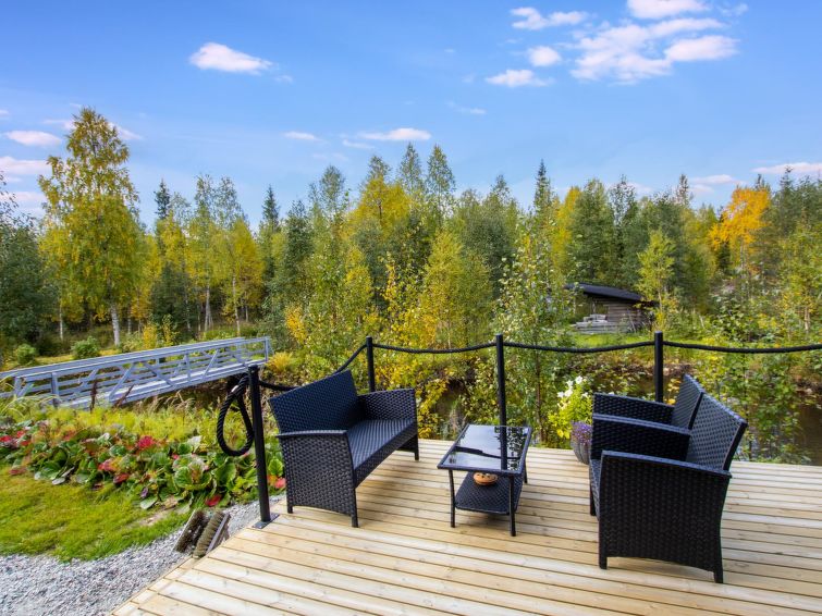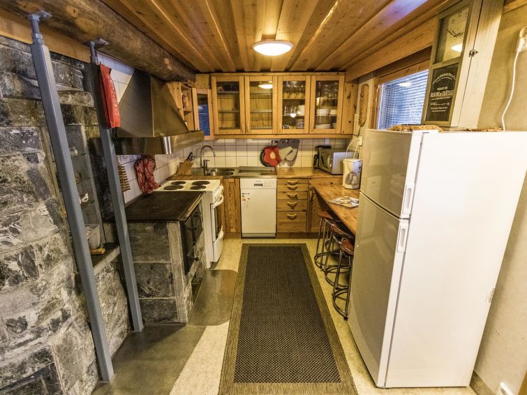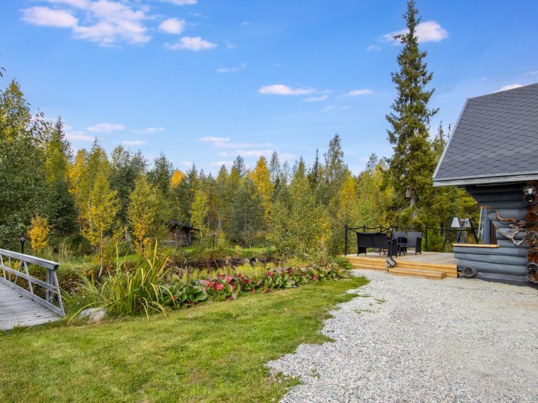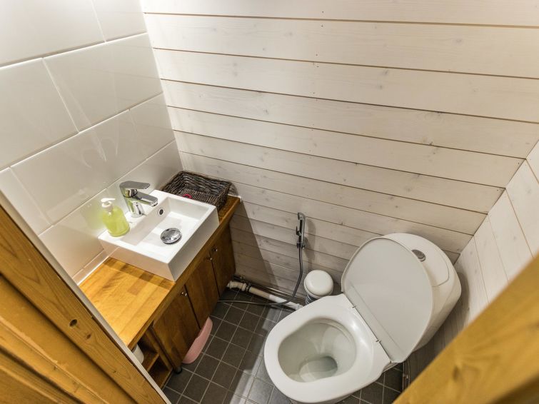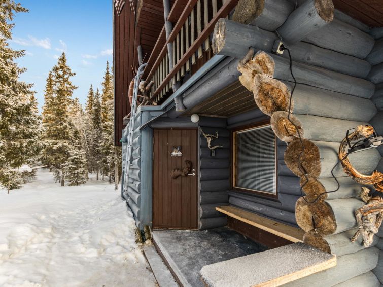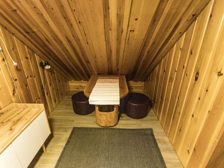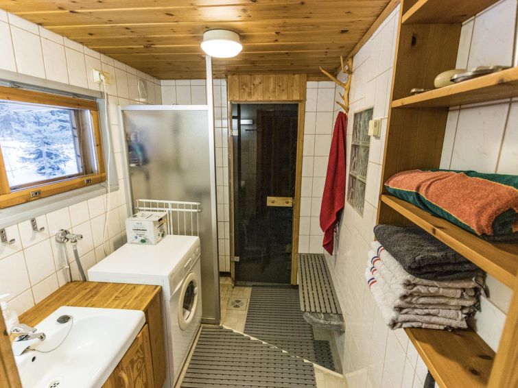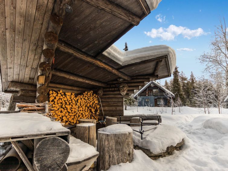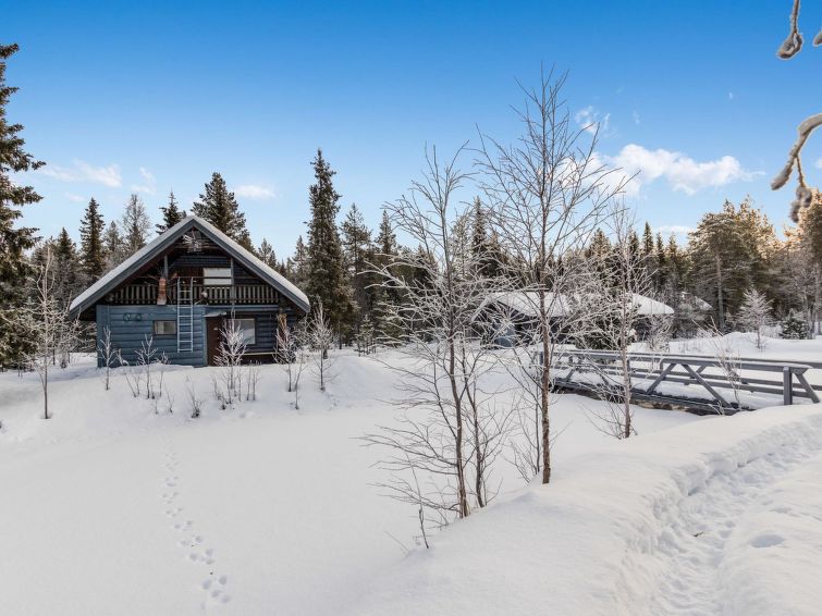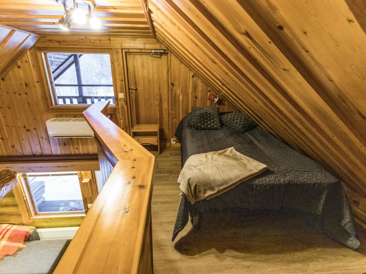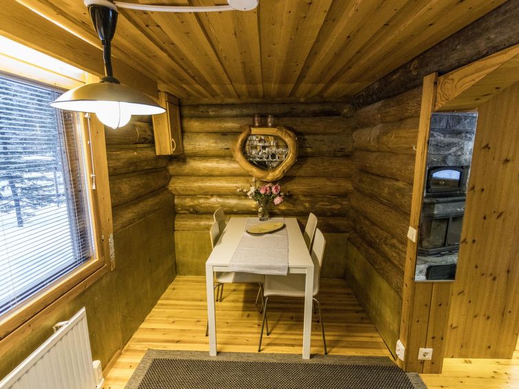 A seperate log cottage located 165 km north of Rovaniemi in Ylläsjärvi village. Built 2000. Kitchen, living room (sofa), upstairs bed room with accordion door (2 beds) and loft with 120 cm bed, washing room, wood warmed sauna, shower, toilet. 2 parking places. In front of the cabin there is a small pond guest can swim in the summer. Connecting track to the Ylläs trail network (300 m) directly from the yard. Bed linen available for rent.